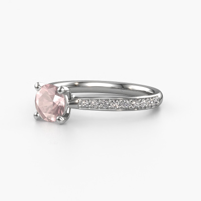 Der oben gezeigte Platin Verlobungsring wird Mignon rnd 2 genannt. Es ist ein Pavé Solitär Ring, da er einen zentralen Edelstein und ein Band mit Pavé-Fassung hat. Der Luxus Pavé Solitär Verlobungsring ist in der Kombination Platin mit Platin und ist mit einem rund 6 mm Morganit Champagner-Mittelstein besetzt und das Band hat eine Pavé-Fassung mit Lab grown Diamant. Jedes Schmuckstück wird hergestellt von einem Team leidenschaftlicher Goldschmiede und Schmuckdesigner. Das wird Ihr Kronjuwel unbedingt zu einem Blickfang machen. Um den zentralen Stein noch mehr zu betonen, hat das Band eine Pavé-Fassung mit weiteren Morganit Champagner. Durch die offenen Krappen kann das Licht aus mehreren Winkeln auf den Morganit Champagner treffen und der Morganit Champagner-Ring funkelt noch mehr. Das obere Foto zeigt die leidenschaftlich handgefertigten Details des Rings. Die hohe Positionierung der Mittelstein ist ein echter Blickfang. Der perfekte Verlobungsring für das Kronjuwel Ihres Lebens!Mit unserer modernen Technik können wir Schmuckstücke von höchster Qualität mit größter Sorgfalt für Sie entwerfen und anpassen. Unsere Verlobungsringe sind immer um 30 Prozent günstiger als bei anderen Juwelieren. Wir fertigen Verlobungsringe auf Bestellung, also müssen wir keine großen Lager unterhalten. Wenn Sie ein bestimmtes Budget haben, beraten wir Sie gerne entsprechend.Verschiedene Arten von neuen Ringen werden täglich von unserem Team angefertigt. Vielleicht haben Sie irgendwo einen Pavé Solitär Verlobungsring gefunden. Einen, den Sie Ihrem Liebsten schenken möchten. Bitte zögern Sie nicht, unseren Schmuckdesignern Ihre Gedanken und Ihr Design zu zeigen. Wir würden gerne Ihr Design in einen Luxus Verlobungsring verwandeln. Sie können die Entwicklungen Ihres Ringdesigns verfolgen, da wir sehr detaillierte 3D-Zeichnungen verwenden. Darüber hinaus können Sie einen Dummy des Designs bestellen. Ein Dummy ist ein Kunststoffring, der nach Ihrem Ringdesign gestaltet werden kann. Sie können ihn anprobieren und prüfen, ob der Verlobungsring Ihren Vorstellungen entspricht. Wir senden Ihnen gerne ein unverbindliches Angebot zu einem fairen Preis/Leistungsverhältnis. Das Angebot wird Sie angesichts der Qualität des Rings und der Edelsteine verblüffen.Um es einfacher zu machen, bieten wir eine kostenlose 30-tägige Rücksendung.