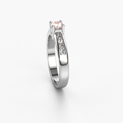 Der oben gezeigte Platin Verlobungsring wird Eline 2 genannt. Es ist ein Pavé Solitär Ring, da er einen zentralen Edelstein und ein Band mit Pavé-Fassung hat. Der moderne Pavé Solitär Verlobungsring ist in der Kombination Platin mit Platin und ist mit einem rund 3.7 mm Morganit Champagner-Mittelstein besetzt und das Band hat eine Pavé-Fassung mit Diamanten. Jedes Schmuckstück ist einzigartig in jeder Hinsicht! Einfach nach Ihren Wünschen anzupassen. Um den zentralen Stein noch mehr zu betonen, hat das Band eine Pavé-Fassung mit weiteren Morganit Champagner. Durch die offenen Krappen kann das Licht aus mehreren Winkeln auf den Morganit Champagner treffen und der Morganit Champagner-Ring funkelt noch mehr. Das obere Foto zeigt die leidenschaftlich handgefertigten Details des Rings. Die hohe Positionierung der Mittelstein ist ein echter Blickfang. Der perfekte Verlobungsring für das Kronjuwel Ihres Lebens!