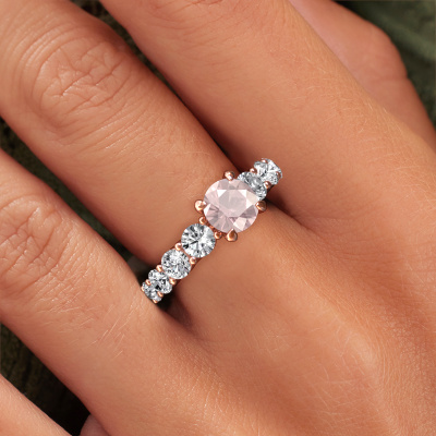 Der oben gezeigte Ring wird Deja genannt. Es ist ein Pavé Solitär Ring, da er einen zentralen Edelstein und ein Band mit Pavé-Fassung hat. Dieser 585 Roségold ring ist mit einem 6.5 mm rund Morganit Champagner-Mittelstein besetzt und das Band hat eine Pavé-Fassung mit Lab grown Diamant. Jedes Schmuckstück wird von unseren Meister-Goldschmieden in unserem eigenen Studio für Sie gefertigt.Dieser exklusive Roségold Pavé Solitär Verlobungsring mit Pavé-Fassung hat einen exquisiten, rund Morganit Champagner als Mittelstein. Um den zentralen Stein noch mehr zu betonen, hat das Band eine Pavé-Fassung mit weiteren Lab grown Diamant. Durch die offenen Krappen kann das Licht aus mehreren Winkeln auf den Morganit Champagner treffen und der Morganit Champagner-Ring funkelt noch mehr. Das obere Foto zeigt die leidenschaftlich handgefertigten Details des Rings. Die hohe Positionierung der Mittelstein ist ein echter Blickfang. Der perfekte Verlobungsring für das Kronjuwel Ihres Lebens!Durch die Kombination modernster Technik mit uralter Handwerkskunst können wir alle Verlobungsringe in unserem eigenen Studio anfertigen. Jedes Schmuckstück wird auf Anfrage gefertigt. Das ist vorteilhaft, weil wir Ihnen dadurch einen Preis anbieten können, den Sie nirgendwo anders finden.Unser Team fügt unserer Online-Kollektion täglich neue Designs hinzu. Unsere Designer und Goldschmiede arbeiten zusammen, um das beste Design zu kreieren. Wir bemühen uns, eine vielfältige Kollektion von Schmuckstücken anzubieten. Vielleicht haben Sie ein bestimmtes Design im Sinn. Eines, dass Sie irgendwo gesehen haben. Gerne geben wir Ihnen eine kostenlose Beratung. Wir machen Ihnen ein Angebot, basierend auf einem fairen Preis/Leistungsverhältnis, das Sie verblüffen wird.Um es einfacher zu machen, bieten wir eine kostenlose 30-tägige Rücksendung.