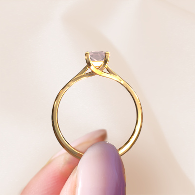 Der oben gezeigte Verlobungsring wird Mia Square genannt. Wir nennen das einen Solitär-Ring, denn er hat einen einzelnen Edelstein. Es ist ein 14 Karat Gold ring, mit 4 mm princess Morganit Champagner. Das Besondere an unserem Konfigurator ist dass Sie selbst einem Schmuckstück zusammenstellen können zu einem eigenen persönlichen Schmuckstück. Dieser Solitäre Verlobungsring ist gefertigt in der Edelmetall Kombination Gold mit Gold, aber Sie können also auch wählen aus anderen Farben. Jedes Schmuckstück wird hergestellt von einem Team leidenschaftlicher Goldschmiede und Schmuckdesigner. Das wird Ihr Kronjuwel unbedingt zu einem Blickfang machen. Der Solitär-Verlobungsring ist eine Sonderform des Verlobungsring. Seine offenen Krappen ermöglichen, dass Licht aus mehr Winkeln auf den Edelstein trifft. Dieser moderne Verlobungsring ist durch die hohe Positionierung des Edelsteins ein atemberaubender Blickfang. Wir schmücken diesen Solitär-Ring sorgfältig von Hand, damit Sie Ihren Anfrage mit einem einzigartigen Ring würdigen können. Die Liebe Ihres Lebens verdient nur das Beste. Mit unserer modernen Technik können wir Schmuckstücke von höchster Qualität mit größter Sorgfalt für Sie entwerfen und anpassen. Unsere Verlobungsringe sind immer um 30 Prozent günstiger als bei anderen Juwelieren. Wir fertigen Verlobungsringe auf Bestellung, also müssen wir keine großen Lager unterhalten. Wenn Sie ein bestimmtes Budget haben, beraten wir Sie gerne entsprechend.Haben Sie irgendwo einen bestimmten Verlobungsring gefunden, den Sie Ihrem Liebsten schenken möchten? Sie können uns gerne sagen, was Sie wollen und wir werden Ihr Design in einen Einzigartigen moderne Verlobungsring verwandeln. Sie können die Entwicklungen Ihres Ringdesigns verfolgen, da wir 3D-Zeichnungen verwenden. Das gibt Ihnen eine realistische Vorschau, wie Ihr Design aussehen wird. Sie können auch einen Dummy vorbestellen. Ein Dummy ist ein Kunststoffring, der nach Ihrem Ringdesign gestaltet werden kann. Sie können ihn anprobieren und prüfen, ob seine Breite und Größe für Sie geeignet sind. Wir senden Ihnen gerne ein unverbindliches Angebot zu einem fairen Preis/Leistungsverhältnis. Sie werden in Anbetracht der Qualität des Rings und der Edelsteine überrascht sein.Um es einfacher zu machen, bieten wir eine kostenlose 30-tägige Rücksendung.