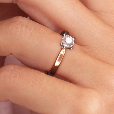 Der oben gezeigte Verlobungsring wird Mignon rnd 1 genannt. Wir nennen das einen Solitär-Ring, denn er hat einen einzelnen Edelstein. Es ist ein 14 Karat Roségold ring, mit 5 mm rund Morganit Champagner. Das Besondere an unserem Konfigurator ist dass Sie selbst einem Schmuckstück zusammenstellen können zu einem eigenen persönlichen Schmuckstück. Dieser Solitäre Verlobungsring ist gefertigt in der Edelmetall Kombination Roségold mit Weißgold, aber Sie können also auch wählen aus anderen Farben. Jedes Schmuckstück wird hergestellt mit Leidenschaft und Liebe, von einem unserer Meister-Goldschmiede. Der Solitär-Verlobungsring ist eine Sonderform des Verlobungsring. Seine offenen Krappen ermöglichen, dass Licht aus mehr Winkeln auf den Edelstein trifft. Dieser klassische Verlobungsring ist durch die hohe Positionierung des Edelsteins ein atemberaubender Blickfang. Wir schmücken diesen Solitär-Ring sorgfältig von Hand, damit Sie Ihren Anfrage mit einem einzigartigen Ring würdigen können. Die Liebe Ihres Lebens verdient nur das Beste. Nach Erhalt Ihrer Bestellung beginnen unsere Goldschmiede mit Leidenschaft den kreativen Prozess und fertigen Ihren Verlobungsring in unserem eigenen Studio. Da wir keine großen Lager haben, werden diese Kosten nicht an Sie weitergegeben. Unsere Preisgestaltung ist der Beweis dafür! Wir bieten Schmuck zum niedrigsten Preis, garantiert.Haben Sie irgendwo einen bestimmten Verlobungsring gefunden, den Sie Ihrem Liebsten schenken möchten? Sie können uns gerne sagen, was Sie wollen und wir werden Ihr Design in einen Einzigartigen klassische Verlobungsring verwandeln. Sie können die Entwicklungen Ihres Ringdesigns verfolgen, da wir 3D-Zeichnungen verwenden. Das gibt Ihnen eine realistische Vorschau, wie Ihr Design aussehen wird. Sie können auch einen Dummy vorbestellen. Ein Dummy ist ein Kunststoffring, der nach Ihrem Ringdesign gestaltet werden kann. Sie können ihn anprobieren und prüfen, ob seine Breite und Größe für Sie geeignet sind. Wir senden Ihnen gerne ein unverbindliches Angebot zu einem fairen Preis/Leistungsverhältnis. Sie werden in Anbetracht der Qualität des Rings und der Edelsteine überrascht sein.Um es einfacher zu machen, bieten wir eine kostenlose 30-tägige Rücksendung.