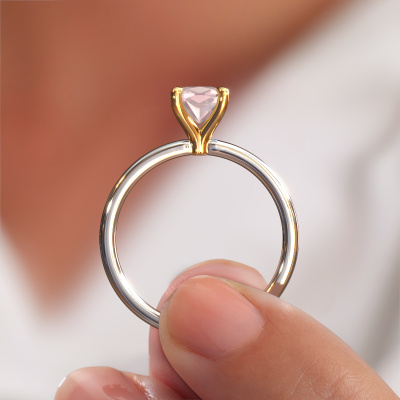Der oben gezeigte Verlobungsring wird Crystal CUS 1 genannt. Wir nennen das einen Solitär-Ring, denn er hat einen einzelnen Edelstein. Es ist ein 14 Karat Weißgold ring, mit 5.5 mm cussion Morganit Champagner. Das Besondere an unserem Konfigurator ist dass Sie selbst einem Schmuckstück zusammenstellen können zu einem eigenen persönlichen Schmuckstück. Dieser Solitäre Verlobungsring ist gefertigt in der Edelmetall Kombination Weißgold mit Gold, aber Sie können also auch wählen aus anderen Farben. Jedes Schmuckstück wird hergestellt mit Leidenschaft und Liebe, von einem unserer Meister-Goldschmiede. Der Solitär-Verlobungsring ist eine Sonderform des Verlobungsring. Seine offenen Krappen ermöglichen, dass Licht aus mehr Winkeln auf den Edelstein trifft. Dieser moderne Verlobungsring ist durch die hohe Positionierung des Edelsteins ein atemberaubender Blickfang. Wir schmücken diesen Solitär-Ring sorgfältig von Hand, damit Sie Ihren Anfrage mit einem einzigartigen Ring würdigen können. Die Liebe Ihres Lebens verdient nur das Beste. Da wir unsere eigenen Ringe entwerfen und liefern, können wir Ihnen einen Verlobungsring zu einem Preis anbieten, den Sie nirgendwo anders finden. Ein Ring wird auf Bestellung angefertigt, wodurch kein überschüssiges Material anfällt. So können wir Ihnen ein gutes Angebot zum besten Preis machen. Wir verstehen, dass es sich riskant anfühlt, Ihren Verlobungsring online zu kaufen. Jedoch helfen wir Ihnen gerne beim Designprozess unter Berücksichtigung Ihres Budgets.Unser Team fügt unserer Online-Kollektion täglich neue Designs hinzu. Unsere Designer und Goldschmiede arbeiten zusammen, um das beste Design zu kreieren. Wir bemühen uns, eine vielfältige Kollektion von Schmuckstücken anzubieten. Vielleicht haben Sie ein bestimmtes Design im Sinn. Eines, dass Sie irgendwo gesehen haben. Gerne geben wir Ihnen eine kostenlose Beratung. Wir machen Ihnen ein Angebot, basierend auf einem fairen Preis/Leistungsverhältnis, das Sie verblüffen wird.Um es einfacher zu machen, bieten wir eine kostenlose 30-tägige Rücksendung.