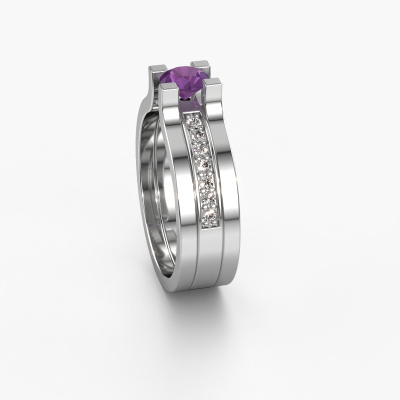 Dieser Ring aus Platin heißt Myrthe und hat 5 mm Amethyst. Dieser graziöse Platin Pavé Solitär Verlobungsring ist ein wahres Kunstwerk! Die Ornamente werden mit viel Geduld und großer Leidenschaft gefertigt. Um diesen Ring mit großer Präzision zu schaffen, erfordert dieses Handwerk ein scharfes Auge und eine geschickte Hand. Eine Herausforderung, die bei unseren erfahrenen Juwelieren ein Feuer entfacht. Die exquisiten Amethysten sind auf eine besondere Art und Weise gefasst, so dass sie noch mehr hervorstechen. Dies verleiht dem Ring eine noch glamourösere Erscheinung. Der Ring an sich ist schon wegen der Edelsteine einzigartig, die wir speziell für diesen Ring auswählen. Obendrein wählen Sie die Edelmetalle aus, mit denen Ihr einzigartiger Ring für die außergewöhnlichste Frau Ihres Lebens gemacht wird! Jedes Schmuckstück wird nur für Sie persönlich hergestellt, mit Liebe zum Detail und Design.Nachdem Sie Ihre Bestellung aufgegeben haben, beginnen unsere Goldschmiede mit dem kreativen Prozess der Herstellung Ihres Myrthe Verlobungsring. Wir haben keine Lager. Das ist vorteilhaft, da diese Kosten nicht an Sie weitergegeben werden. Daher sind wir in der Lage, Schmuck zu außergewöhnlich niedrigen Preisen anzubieten.Unsere Designer und Goldschmiede arbeiten jeden Tag zusammen und versuchen, neue Schmuckstücke zu kreieren. Vielleicht haben Sie irgendwo einen schönen, moderne Verlobungsring gefunden, nach dem Ihr einzigartiger Ring gestaltet werden kann. Setzen Sie sich mit uns in Verbindung. Wir machen Ihnen ein Angebot, basierend auf einem fairen Preis/Leistungsverhältnis, das Sie begeistern wird.Um es einfacher zu machen, bieten wir eine kostenlose 30-tägige Rücksendung.
