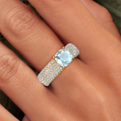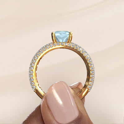 Dieser Ring aus 14 Karat Gold heißt Darcy und hat 7 mm Aquamarin. Dieser Pavé 14 Karat Gold Pavé Solitär Verlobungsring ist ein wahres Kunstwerk! Die Ornamente werden mit viel Geduld und großer Leidenschaft gefertigt. Um diesen Ring mit großer Präzision zu schaffen, erfordert dieses Handwerk ein scharfes Auge und eine geschickte Hand. Eine Herausforderung, die bei unseren erfahrenen Juwelieren ein Feuer entfacht. Die exquisiten Aquamarins sind auf eine besondere Art und Weise gefasst, so dass sie noch mehr hervorstechen. Dies verleiht dem Ring eine noch glamourösere Erscheinung. Der Ring an sich ist schon wegen der Edelsteine einzigartig, die wir speziell für diesen Ring auswählen. Obendrein wählen Sie die Edelmetalle aus, mit denen Ihr einzigartiger Ring für die außergewöhnlichste Frau Ihres Lebens gemacht wird! Jedes Schmuckstück ist einzigartig in jeder Hinsicht! Einfach nach Ihren Wünschen anzupassen.Da wir unsere eigenen Ringe entwerfen und liefern, können wir Ihnen einen Verlobungsring zu einem Preis anbieten, den Sie nirgendwo anders finden. Ein Ring wird auf Bestellung angefertigt, wodurch kein überschüssiges Material anfällt. So können wir Ihnen ein gutes Angebot zum besten Preis machen. Wir verstehen, dass es sich riskant anfühlt, Ihren Verlobungsring online zu kaufen. Jedoch helfen wir Ihnen gerne beim Designprozess unter Berücksichtigung Ihres Budgets.Verschiedene Arten von neuen Ringen werden täglich von unserem Team angefertigt. Vielleicht haben Sie irgendwo einen Pavé Solitär Verlobungsring gefunden. Einen, den Sie Ihrem Liebsten schenken möchten. Bitte zögern Sie nicht, unseren Schmuckdesignern Ihre Gedanken und Ihr Design zu zeigen. Wir würden gerne Ihr Design in einen exklusive Verlobungsring verwandeln. Sie können die Entwicklungen Ihres Ringdesigns verfolgen, da wir sehr detaillierte 3D-Zeichnungen verwenden. Darüber hinaus können Sie einen Dummy des Designs bestellen. Ein Dummy ist ein Kunststoffring, der nach Ihrem Ringdesign gestaltet werden kann. Sie können ihn anprobieren und prüfen, ob der Verlobungsring Ihren Vorstellungen entspricht. Wir senden Ihnen gerne ein unverbindliches Angebot zu einem fairen Preis/Leistungsverhältnis. Das Angebot wird Sie angesichts der Qualität des Rings und der Edelsteine verblüffen.Um es einfacher zu machen, bieten wir eine kostenlose 30-tägige Rücksendung.