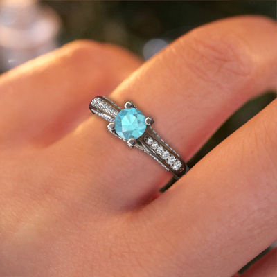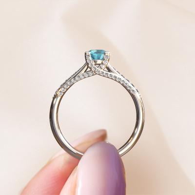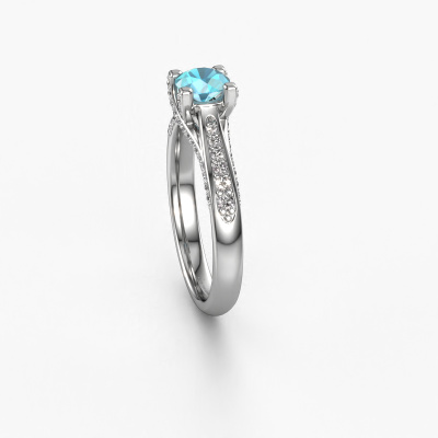 Dieser Ring aus Platin heißt Mia 3 und hat 5 mm Blau Topas. Dieser blinkende Platin Pavé Solitär Verlobungsring ist ein wahres Kunstwerk! Die Ornamente werden mit viel Geduld und großer Leidenschaft gefertigt. Um diesen Ring mit großer Präzision zu schaffen, erfordert dieses Handwerk ein scharfes Auge und eine geschickte Hand. Eine Herausforderung, die bei unseren erfahrenen Juwelieren ein Feuer entfacht. Die exquisiten Blaue Topas sind auf eine besondere Art und Weise gefasst, so dass sie noch mehr hervorstechen. Dies verleiht dem Ring eine noch glamourösere Erscheinung. Der Ring an sich ist schon wegen der Edelsteine einzigartig, die wir speziell für diesen Ring auswählen. Obendrein wählen Sie die Edelmetalle aus, mit denen Ihr einzigartiger Ring für die außergewöhnlichste Frau Ihres Lebens gemacht wird! Jedes Schmuckstück ist einzigartig in jeder Hinsicht! Einfach nach Ihren Wünschen anzupassen.Haben Sie ein bestimmtes Budget? Sie können uns gerne kontaktieren, damit wir Ihre Optionen besprechen können. Wir bieten unsere Verlobungsringe zum garantiert besten Preis, denn wir fertigen sie auf Bestellung. Solche Preise finden Sie nirgendwo anders!Unser Team fügt unserer Online-Kollektion täglich neue Designs hinzu. Unsere Designer und Goldschmiede arbeiten zusammen, um das beste Design zu kreieren. Wir bemühen uns, eine vielfältige Kollektion von Schmuckstücken anzubieten. Vielleicht haben Sie ein bestimmtes Design im Sinn. Eines, dass Sie irgendwo gesehen haben. Gerne geben wir Ihnen eine kostenlose Beratung. Wir machen Ihnen ein Angebot, basierend auf einem fairen Preis/Leistungsverhältnis, das Sie verblüffen wird.Um es einfacher zu machen, bieten wir eine kostenlose 30-tägige Rücksendung.