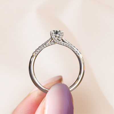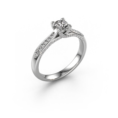 Dieser Ring aus 14 Karat Weißgold heißt Mia 3 und hat 0.548 crt Diamant. Dieser blinkende 14 Karat Weißgold Pavé Solitär Verlobungsring ist ein wahres Kunstwerk! Die Ornamente werden mit viel Geduld und großer Leidenschaft gefertigt. Um diesen Ring mit großer Präzision zu schaffen, erfordert dieses Handwerk ein scharfes Auge und eine geschickte Hand. Eine Herausforderung, die bei unseren erfahrenen Juwelieren ein Feuer entfacht. Die exquisiten Diamanten sind auf eine besondere Art und Weise gefasst, so dass sie noch mehr hervorstechen. Dies verleiht dem Ring eine noch glamourösere Erscheinung. Der Ring an sich ist schon wegen der Edelsteine einzigartig, die wir speziell für diesen Ring auswählen. Obendrein wählen Sie die Edelmetalle aus, mit denen Ihr einzigartiger Ring für die außergewöhnlichste Frau Ihres Lebens gemacht wird! Jedes Schmuckstück ist einzigartig in jeder Hinsicht! Einfach nach Ihren Wünschen anzupassen.Haben Sie ein bestimmtes Budget? Sie können uns gerne kontaktieren, damit wir Ihre Optionen besprechen können. Wir bieten unsere Verlobungsringe zum garantiert besten Preis, denn wir fertigen sie auf Bestellung. Solche Preise finden Sie nirgendwo anders!Unser Team fügt unserer Online-Kollektion täglich neue Designs hinzu. Unsere Designer und Goldschmiede arbeiten zusammen, um das beste Design zu kreieren. Wir bemühen uns, eine vielfältige Kollektion von Schmuckstücken anzubieten. Vielleicht haben Sie ein bestimmtes Design im Sinn. Eines, dass Sie irgendwo gesehen haben. Gerne geben wir Ihnen eine kostenlose Beratung. Wir machen Ihnen ein Angebot, basierend auf einem fairen Preis/Leistungsverhältnis, das Sie verblüffen wird.Um es einfacher zu machen, bieten wir eine kostenlose 30-tägige Rücksendung.