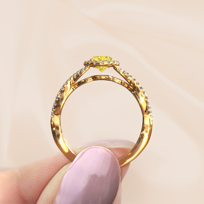 Dieser Ring aus 14 Karat Gold heißt Dionne ovl und hat 7x5 mm Gelb Saphir. Dieser verdreht 14 Karat Gold Pavé Solitär Verlobungsring ist ein wahres Kunstwerk! Die Ornamente werden mit viel Geduld und großer Leidenschaft gefertigt. Um diesen Ring mit großer Präzision zu schaffen, erfordert dieses Handwerk ein scharfes Auge und eine geschickte Hand. Eine Herausforderung, die bei unseren erfahrenen Juwelieren ein Feuer entfacht. Die exquisiten Gelb Saphir sind auf eine besondere Art und Weise gefasst, so dass sie noch mehr hervorstechen. Dies verleiht dem Ring eine noch glamourösere Erscheinung. Der Ring an sich ist schon wegen der Edelsteine einzigartig, die wir speziell für diesen Ring auswählen. Obendrein wählen Sie die Edelmetalle aus, mit denen Ihr einzigartiger Ring für die außergewöhnlichste Frau Ihres Lebens gemacht wird! Jedes Schmuckstück ist einzigartig in jeder Hinsicht! Einfach nach Ihren Wünschen anzupassen.Nachdem Sie Ihre Bestellung aufgegeben haben, beginnen unsere Goldschmiede mit dem kreativen Prozess der Herstellung Ihres Dionne ovl Verlobungsring. Wir haben keine Lager. Das ist vorteilhaft, da diese Kosten nicht an Sie weitergegeben werden. Daher sind wir in der Lage, Schmuck zu außergewöhnlich niedrigen Preisen anzubieten.Verschiedene Arten von neuen Ringen werden täglich von unserem Team angefertigt. Vielleicht haben Sie irgendwo einen Pavé Solitär Verlobungsring gefunden. Einen, den Sie Ihrem Liebsten schenken möchten. Bitte zögern Sie nicht, unseren Schmuckdesignern Ihre Gedanken und Ihr Design zu zeigen. Wir würden gerne Ihr Design in einen exklusive Verlobungsring verwandeln. Sie können die Entwicklungen Ihres Ringdesigns verfolgen, da wir sehr detaillierte 3D-Zeichnungen verwenden. Darüber hinaus können Sie einen Dummy des Designs bestellen. Ein Dummy ist ein Kunststoffring, der nach Ihrem Ringdesign gestaltet werden kann. Sie können ihn anprobieren und prüfen, ob der Verlobungsring Ihren Vorstellungen entspricht. Wir senden Ihnen gerne ein unverbindliches Angebot zu einem fairen Preis/Leistungsverhältnis. Das Angebot wird Sie angesichts der Qualität des Rings und der Edelsteine verblüffen.Um es einfacher zu machen, bieten wir eine kostenlose 30-tägige Rücksendung.