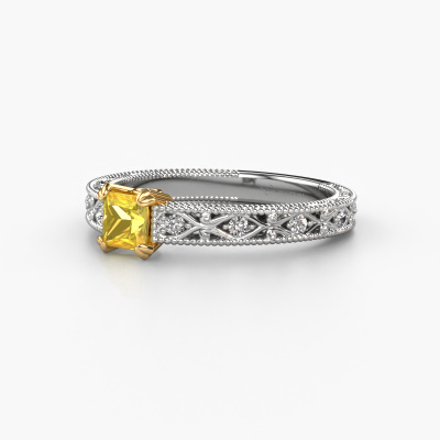 Dieser Verlobungsring aus 14 Karat Weißgold heißt Ardella und hat einen 4 mm Gelb Saphir. Ein außergewöhnlicher, Weißgold Vintage Ring. Einer, der die Liebe Ihres Lebens mit Sicherheit wie ein Gelb Saphir erstrahlen lässt! Das hoffen wir zu erreichen. Dieser Vintage Verlobungsring ist mit exquisiten Gelb Saphir besetzt. Welchen Edelstein Sie aus unserer Auswahl haben möchten, liegt ganz bei Ihnen. Der Edelstein wird mit großer Sorgfalt ausgewählt. Denn wir glauben, dass Ihr Filigrane Verlobungsring nur mit dem schönsten Edelstein gekrönt sein darf. Sehen Sie das auch so? Unser erfahrener Juwelier entwirft Ihren Ring in unserem eigenen Studio, wo der Gelb Saphir mit großer Präzision eingefasst wird. Der Ring wird dann bearbeitet und poliert, bis er perfekt ist. Nichts als das Beste für die Liebe Ihres Lebens! Jedes Schmuckstück wird von unseren Meister-Goldschmieden in unserem eigenen Studio für Sie gefertigt.Nach Erhalt Ihrer Bestellung beginnen unsere Goldschmiede mit Leidenschaft den kreativen Prozess und fertigen Ihren Verlobungsring in unserem eigenen Studio. Da wir keine großen Lager haben, werden diese Kosten nicht an Sie weitergegeben. Unsere Preisgestaltung ist der Beweis dafür! Wir bieten Schmuck zum niedrigsten Preis, garantiert.Verschiedene Arten von neuen Ringen werden täglich von unserem Team angefertigt. Vielleicht haben Sie irgendwo einen Pavé Solitär Verlobungsring gefunden. Einen, den Sie Ihrem Liebsten schenken möchten. Bitte zögern Sie nicht, unseren Schmuckdesignern Ihre Gedanken und Ihr Design zu zeigen. Wir würden gerne Ihr Design in einen Vintage Verlobungsring verwandeln. Sie können die Entwicklungen Ihres Ringdesigns verfolgen, da wir sehr detaillierte 3D-Zeichnungen verwenden. Darüber hinaus können Sie einen Dummy des Designs bestellen. Ein Dummy ist ein Kunststoffring, der nach Ihrem Ringdesign gestaltet werden kann. Sie können ihn anprobieren und prüfen, ob der Verlobungsring Ihren Vorstellungen entspricht. Wir senden Ihnen gerne ein unverbindliches Angebot zu einem fairen Preis/Leistungsverhältnis. Das Angebot wird Sie angesichts der Qualität des Rings und der Edelsteine verblüffen.Um es einfacher zu machen, bieten wir eine kostenlose 30-tägige Rücksendung.