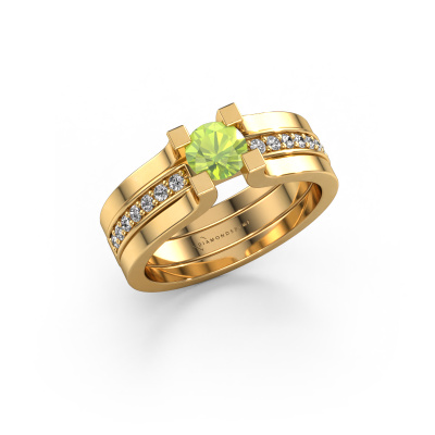 Dieser Ring aus 14 Karat Gold heißt Myrthe und hat 5 mm Peridot. Dieser graziöse 14 Karat Gold Pavé Solitär Verlobungsring ist ein wahres Kunstwerk! Die Ornamente werden mit viel Geduld und großer Leidenschaft gefertigt. Um diesen Ring mit großer Präzision zu schaffen, erfordert dieses Handwerk ein scharfes Auge und eine geschickte Hand. Eine Herausforderung, die bei unseren erfahrenen Juwelieren ein Feuer entfacht. Die exquisiten Peridot sind auf eine besondere Art und Weise gefasst, so dass sie noch mehr hervorstechen. Dies verleiht dem Ring eine noch glamourösere Erscheinung. Der Ring an sich ist schon wegen der Edelsteine einzigartig, die wir speziell für diesen Ring auswählen. Obendrein wählen Sie die Edelmetalle aus, mit denen Ihr einzigartiger Ring für die außergewöhnlichste Frau Ihres Lebens gemacht wird! Jedes Schmuckstück wird nur für Sie persönlich hergestellt, mit Liebe zum Detail und Design.Nachdem Sie Ihre Bestellung aufgegeben haben, beginnen unsere Goldschmiede mit dem kreativen Prozess der Herstellung Ihres Myrthe Verlobungsring. Wir haben keine Lager. Das ist vorteilhaft, da diese Kosten nicht an Sie weitergegeben werden. Daher sind wir in der Lage, Schmuck zu außergewöhnlich niedrigen Preisen anzubieten.Unsere Designer und Goldschmiede arbeiten jeden Tag zusammen und versuchen, neue Schmuckstücke zu kreieren. Vielleicht haben Sie irgendwo einen schönen, moderne Verlobungsring gefunden, nach dem Ihr einzigartiger Ring gestaltet werden kann. Setzen Sie sich mit uns in Verbindung. Wir machen Ihnen ein Angebot, basierend auf einem fairen Preis/Leistungsverhältnis, das Sie begeistern wird.Um es einfacher zu machen, bieten wir eine kostenlose 30-tägige Rücksendung.