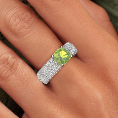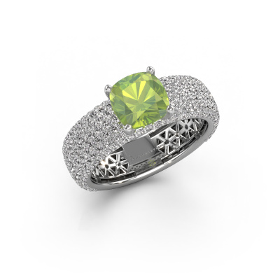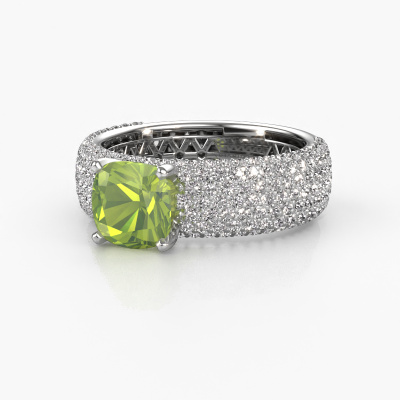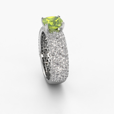 Dieser Ring aus 14 Karat Weißgold heißt Darcy und hat 7 mm Peridot. Dieser Pavé 14 Karat Weißgold Pavé Solitär Verlobungsring ist ein wahres Kunstwerk! Die Ornamente werden mit viel Geduld und großer Leidenschaft gefertigt. Um diesen Ring mit großer Präzision zu schaffen, erfordert dieses Handwerk ein scharfes Auge und eine geschickte Hand. Eine Herausforderung, die bei unseren erfahrenen Juwelieren ein Feuer entfacht. Die exquisiten Peridot sind auf eine besondere Art und Weise gefasst, so dass sie noch mehr hervorstechen. Dies verleiht dem Ring eine noch glamourösere Erscheinung. Der Ring an sich ist schon wegen der Edelsteine einzigartig, die wir speziell für diesen Ring auswählen. Obendrein wählen Sie die Edelmetalle aus, mit denen Ihr einzigartiger Ring für die außergewöhnlichste Frau Ihres Lebens gemacht wird! Jedes Schmuckstück ist einzigartig in jeder Hinsicht! Einfach nach Ihren Wünschen anzupassen.Da wir unsere eigenen Ringe entwerfen und liefern, können wir Ihnen einen Verlobungsring zu einem Preis anbieten, den Sie nirgendwo anders finden. Ein Ring wird auf Bestellung angefertigt, wodurch kein überschüssiges Material anfällt. So können wir Ihnen ein gutes Angebot zum besten Preis machen. Wir verstehen, dass es sich riskant anfühlt, Ihren Verlobungsring online zu kaufen. Jedoch helfen wir Ihnen gerne beim Designprozess unter Berücksichtigung Ihres Budgets.Verschiedene Arten von neuen Ringen werden täglich von unserem Team angefertigt. Vielleicht haben Sie irgendwo einen Pavé Solitär Verlobungsring gefunden. Einen, den Sie Ihrem Liebsten schenken möchten. Bitte zögern Sie nicht, unseren Schmuckdesignern Ihre Gedanken und Ihr Design zu zeigen. Wir würden gerne Ihr Design in einen exklusive Verlobungsring verwandeln. Sie können die Entwicklungen Ihres Ringdesigns verfolgen, da wir sehr detaillierte 3D-Zeichnungen verwenden. Darüber hinaus können Sie einen Dummy des Designs bestellen. Ein Dummy ist ein Kunststoffring, der nach Ihrem Ringdesign gestaltet werden kann. Sie können ihn anprobieren und prüfen, ob der Verlobungsring Ihren Vorstellungen entspricht. Wir senden Ihnen gerne ein unverbindliches Angebot zu einem fairen Preis/Leistungsverhältnis. Das Angebot wird Sie angesichts der Qualität des Rings und der Edelsteine verblüffen.Um es einfacher zu machen, bieten wir eine kostenlose 30-tägige Rücksendung.