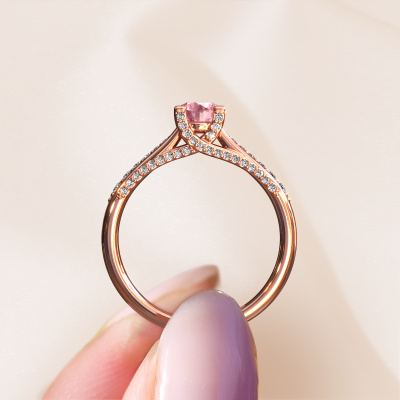 Dieser Ring aus 14 Karat Roségold heißt Mia 3 und hat 5 mm rosa Labordiamant. Dieser blinkende 14 Karat Roségold Pavé Solitär Verlobungsring ist ein wahres Kunstwerk! Die Ornamente werden mit viel Geduld und großer Leidenschaft gefertigt. Um diesen Ring mit großer Präzision zu schaffen, erfordert dieses Handwerk ein scharfes Auge und eine geschickte Hand. Eine Herausforderung, die bei unseren erfahrenen Juwelieren ein Feuer entfacht. Die exquisiten rosa Labordiamanten sind auf eine besondere Art und Weise gefasst, so dass sie noch mehr hervorstechen. Dies verleiht dem Ring eine noch glamourösere Erscheinung. Der Ring an sich ist schon wegen der Edelsteine einzigartig, die wir speziell für diesen Ring auswählen. Obendrein wählen Sie die Edelmetalle aus, mit denen Ihr einzigartiger Ring für die außergewöhnlichste Frau Ihres Lebens gemacht wird! Jedes Schmuckstück ist einzigartig in jeder Hinsicht! Einfach nach Ihren Wünschen anzupassen.Haben Sie ein bestimmtes Budget? Sie können uns gerne kontaktieren, damit wir Ihre Optionen besprechen können. Wir bieten unsere Verlobungsringe zum garantiert besten Preis, denn wir fertigen sie auf Bestellung. Solche Preise finden Sie nirgendwo anders!Unser Team fügt unserer Online-Kollektion täglich neue Designs hinzu. Unsere Designer und Goldschmiede arbeiten zusammen, um das beste Design zu kreieren. Wir bemühen uns, eine vielfältige Kollektion von Schmuckstücken anzubieten. Vielleicht haben Sie ein bestimmtes Design im Sinn. Eines, dass Sie irgendwo gesehen haben. Gerne geben wir Ihnen eine kostenlose Beratung. Wir machen Ihnen ein Angebot, basierend auf einem fairen Preis/Leistungsverhältnis, das Sie verblüffen wird.Um es einfacher zu machen, bieten wir eine kostenlose 30-tägige Rücksendung.