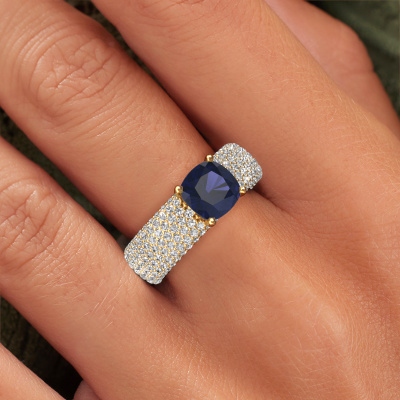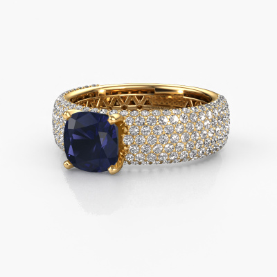 Dieser Ring aus 14 Karat Gold heißt Darcy und hat 7 mm Saphir. Dieser Pavé 14 Karat Gold Pavé Solitär Verlobungsring ist ein wahres Kunstwerk! Die Ornamente werden mit viel Geduld und großer Leidenschaft gefertigt. Um diesen Ring mit großer Präzision zu schaffen, erfordert dieses Handwerk ein scharfes Auge und eine geschickte Hand. Eine Herausforderung, die bei unseren erfahrenen Juwelieren ein Feuer entfacht. Die exquisiten Saphir sind auf eine besondere Art und Weise gefasst, so dass sie noch mehr hervorstechen. Dies verleiht dem Ring eine noch glamourösere Erscheinung. Der Ring an sich ist schon wegen der Edelsteine einzigartig, die wir speziell für diesen Ring auswählen. Obendrein wählen Sie die Edelmetalle aus, mit denen Ihr einzigartiger Ring für die außergewöhnlichste Frau Ihres Lebens gemacht wird! Jedes Schmuckstück ist einzigartig in jeder Hinsicht! Einfach nach Ihren Wünschen anzupassen.Da wir unsere eigenen Ringe entwerfen und liefern, können wir Ihnen einen Verlobungsring zu einem Preis anbieten, den Sie nirgendwo anders finden. Ein Ring wird auf Bestellung angefertigt, wodurch kein überschüssiges Material anfällt. So können wir Ihnen ein gutes Angebot zum besten Preis machen. Wir verstehen, dass es sich riskant anfühlt, Ihren Verlobungsring online zu kaufen. Jedoch helfen wir Ihnen gerne beim Designprozess unter Berücksichtigung Ihres Budgets.Verschiedene Arten von neuen Ringen werden täglich von unserem Team angefertigt. Vielleicht haben Sie irgendwo einen Pavé Solitär Verlobungsring gefunden. Einen, den Sie Ihrem Liebsten schenken möchten. Bitte zögern Sie nicht, unseren Schmuckdesignern Ihre Gedanken und Ihr Design zu zeigen. Wir würden gerne Ihr Design in einen exklusive Verlobungsring verwandeln. Sie können die Entwicklungen Ihres Ringdesigns verfolgen, da wir sehr detaillierte 3D-Zeichnungen verwenden. Darüber hinaus können Sie einen Dummy des Designs bestellen. Ein Dummy ist ein Kunststoffring, der nach Ihrem Ringdesign gestaltet werden kann. Sie können ihn anprobieren und prüfen, ob der Verlobungsring Ihren Vorstellungen entspricht. Wir senden Ihnen gerne ein unverbindliches Angebot zu einem fairen Preis/Leistungsverhältnis. Das Angebot wird Sie angesichts der Qualität des Rings und der Edelsteine verblüffen.Um es einfacher zu machen, bieten wir eine kostenlose 30-tägige Rücksendung.