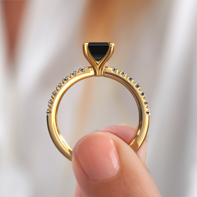 Der oben gezeigte Verlobungsring wird Crystal EME 2 genannt. Wir nennen das einen Solitär-Ring, denn er hat einen einzelnen Edelstein. Es ist ein 14 Karat Gold Verlobungsring, mit 2.10 crt smaragd schliff Schwarz Diamant. Dieser exklusive Gold Solitär-Ring mit exquisitem, smaragd schliff Schwarz Diamant ist ein schöner Verlobungsring. Die offenen Krappen ermöglichen, dass Licht aus mehr Winkeln auf den Edelstein trifft. Der Ring besticht auch durch die hohe Positionierung des Edelsteins. Denn Schwarz Diamant symbolisieren wahre Liebe und Reinheit und machen sie damit zum perfekten Geschenk für die Liebe Ihres Lebens. Das Symbol der ewigen Liebe ist das Herzstück dieses Solitär-Rings. Wie ein Schwarz Diamant haben auch alle anderen Arten von Edelmetallen ihre eigenen, zugeschriebenen symbolischen Bedeutungen. Diese Pavé Solitär Verlobungsring können Sie selbst zusammenstellen in verschiedenen Edelmetall Kombinationen. Dieser hat die Kombination 14 Karat Gold mit Gold. Jedes Schmuckstück wird von unseren Meister-Goldschmieden in unserem eigenen Studio für Sie gefertigt.Durch die Kombination modernster Technik mit uralter Handwerkskunst können wir alle Verlobungsringe in unserem eigenen Studio anfertigen. Jedes Schmuckstück wird auf Anfrage gefertigt. Das ist vorteilhaft, weil wir Ihnen dadurch einen Preis anbieten können, den Sie nirgendwo anders finden.Unser Team fügt unserer Online-Kollektion täglich neue Designs hinzu. Unsere Designer und Goldschmiede arbeiten zusammen, um das beste Design zu kreieren. Wir bemühen uns, eine vielfältige Kollektion von Schmuckstücken anzubieten. Vielleicht haben Sie ein bestimmtes Design im Sinn. Eines, dass Sie irgendwo gesehen haben. Gerne geben wir Ihnen eine kostenlose Beratung. Wir machen Ihnen ein Angebot, basierend auf einem fairen Preis/Leistungsverhältnis, das Sie verblüffen wird.Um es einfacher zu machen, bieten wir eine kostenlose 30-tägige Rücksendung.
