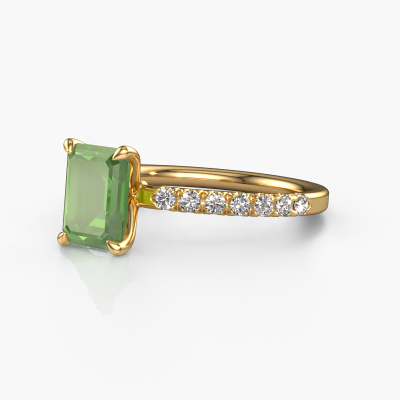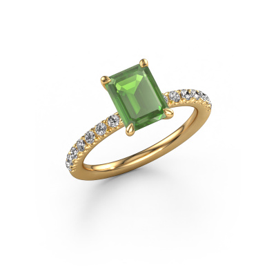 Der oben gezeigte Verlobungsring wird Crystal EME 2 genannt. Wir nennen das einen Solitär-Ring, denn er hat einen einzelnen Edelstein. Es ist ein 14 Karat Gold Verlobungsring, mit 8x6 mm smaragd schliff Turmalin grün. Dieser exklusive Gold Solitär-Ring mit exquisitem, smaragd schliff Turmalin grün ist ein schöner Verlobungsring. Die offenen Krappen ermöglichen, dass Licht aus mehr Winkeln auf den Edelstein trifft. Der Ring besticht auch durch die hohe Positionierung des Edelsteins. Denn Turmalin grün symbolisieren wahre Liebe und Reinheit und machen sie damit zum perfekten Geschenk für die Liebe Ihres Lebens. Das Symbol der ewigen Liebe ist das Herzstück dieses Solitär-Rings. Wie ein Turmalin grün haben auch alle anderen Arten von Edelmetallen ihre eigenen, zugeschriebenen symbolischen Bedeutungen. Diese Pavé Solitär Verlobungsring können Sie selbst zusammenstellen in verschiedenen Edelmetall Kombinationen. Dieser hat die Kombination 14 Karat Gold mit Gold. Jedes Schmuckstück wird von unseren Meister-Goldschmieden in unserem eigenen Studio für Sie gefertigt.Durch die Kombination modernster Technik mit uralter Handwerkskunst können wir alle Verlobungsringe in unserem eigenen Studio anfertigen. Jedes Schmuckstück wird auf Anfrage gefertigt. Das ist vorteilhaft, weil wir Ihnen dadurch einen Preis anbieten können, den Sie nirgendwo anders finden.Unser Team fügt unserer Online-Kollektion täglich neue Designs hinzu. Unsere Designer und Goldschmiede arbeiten zusammen, um das beste Design zu kreieren. Wir bemühen uns, eine vielfältige Kollektion von Schmuckstücken anzubieten. Vielleicht haben Sie ein bestimmtes Design im Sinn. Eines, dass Sie irgendwo gesehen haben. Gerne geben wir Ihnen eine kostenlose Beratung. Wir machen Ihnen ein Angebot, basierend auf einem fairen Preis/Leistungsverhältnis, das Sie verblüffen wird.Um es einfacher zu machen, bieten wir eine kostenlose 30-tägige Rücksendung.