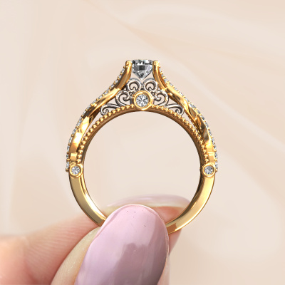 Dieser gewagte Verlobungsring aus 14 Karat Gold heißt Chantelle und hat 0.773 crt Diamant. Ist Ihre Freundin von Vintage begeistert? Dann wird dieser Gold Verlobungsring sicherlich perfekt zu ihrem Stil passen. Ein trendiger Ring mit einem Hauch von klassischem Schmuck. Ein wirklich atemberaubendes, romantisches Design! Vor allem, wenn Sie den Ring nach ihren Wünschen anpassen. Dieser Vintage Pavé Solitär Verlobungsring ist mit atemberaubenden Diamanten besetzt. Wie Sie sehen können, sind Sie der Boss bei der Auswahl des Edelsteins, der am besten zu Ihrer Freundin passt. Jeder Edelstein wird sorgfältig von unseren Händlern ausgewählt, die auf der ganzen Welt verteilt sind. Nichts als die besten Edelsteine für unseren erfahrenen Juwelier! Schließlich ist es seine Krönung! Jedes Schmuckstück wird hergestellt von einem Team leidenschaftlicher Goldschmiede und Schmuckdesigner. Das wird Ihr Kronjuwel unbedingt zu einem Blickfang machen.Haben Sie ein bestimmtes Budget? Sie können uns gerne kontaktieren, damit wir Ihre Optionen besprechen können. Wir bieten unsere Verlobungsringe zum garantiert besten Preis, denn wir fertigen sie auf Bestellung. Solche Preise finden Sie nirgendwo anders!Unsere Designer und Goldschmiede arbeiten jeden Tag zusammen und versuchen, neue Schmuckstücke zu kreieren. Vielleicht haben Sie irgendwo einen schönen, Vintage Verlobungsring gefunden, nach dem Ihr einzigartiger Ring gestaltet werden kann. Setzen Sie sich mit uns in Verbindung. Wir machen Ihnen ein Angebot, basierend auf einem fairen Preis/Leistungsverhältnis, das Sie begeistern wird.Um es einfacher zu machen, bieten wir eine kostenlose 30-tägige Rücksendung.