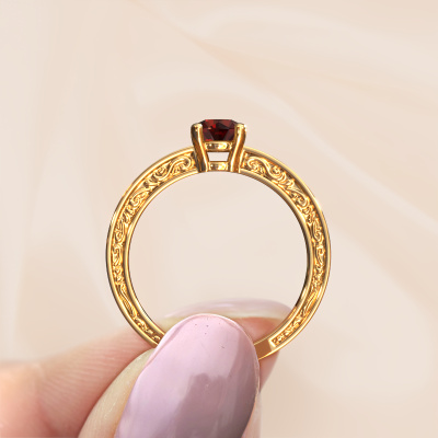 Dieser Filigrane Verlobungsring aus 14 Karat Gold heißt Claudette 2 und hat 5 mm Granat. Ist Ihre Freundin von Vintage begeistert? Dann wird dieser Gold Verlobungsring sicherlich perfekt zu ihrem Stil passen. Ein trendiger Ring mit einem Hauch von klassischem Schmuck. Ein wirklich atemberaubendes, romantisches Design! Vor allem, wenn Sie den Ring nach ihren Wünschen anpassen. Dieser Keltische Pavé Solitär Verlobungsring ist mit atemberaubenden Granat besetzt. Wie Sie sehen können, sind Sie der Boss bei der Auswahl des Edelsteins, der am besten zu Ihrer Freundin passt. Jeder Edelstein wird sorgfältig von unseren Händlern ausgewählt, die auf der ganzen Welt verteilt sind. Nichts als die besten Edelsteine für unseren erfahrenen Juwelier! Schließlich ist es seine Krönung! Jedes Schmuckstück wird von unseren Meister-Goldschmieden in unserem eigenen Studio für Sie gefertigt.Nachdem Sie Ihre Bestellung aufgegeben haben, beginnen unsere Goldschmiede mit dem kreativen Prozess der Herstellung Ihres Claudette 2 Verlobungsring. Wir haben keine Lager. Das ist vorteilhaft, da diese Kosten nicht an Sie weitergegeben werden. Daher sind wir in der Lage, Schmuck zu außergewöhnlich niedrigen Preisen anzubieten.Haben Sie einen bestimmten Ring im Sinn? Eines, dass Sie irgendwo gesehen haben. Bitte zögern Sie nicht, uns zu sagen, was Sie wollen und wir werden Ihr Design in einen Einzigartigen Verlobungsring verwandeln. Sie können die Entwicklungen Ihres Ringdesigns verfolgen, da wir 3D-Zeichnungen verwenden. Das gibt Ihnen eine realistische Vorschau Ihres Designs. Wir senden Ihnen gerne ein unverbindliches Angebot zu einem fairen Preis/Leistungsverhältnis. Es wird Sie erstaunen.Um es einfacher zu machen, bieten wir eine kostenlose 30-tägige Rücksendung.