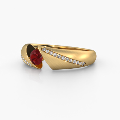 Dieser Verlobungsring aus 14 Karat Gold mit Rubin heißt Hojalien 2. Halten Sie mit den neuesten Modetrends Schritt? Möchten Sie einen einzigartigen Verlobungsring, der zu Ihrem Lebensstil passt? Dieser graziöse Verlobungsring ist ein außergewöhnlicher Ring, der individuell an Ihren persönlichen Stil angepasst werden kann. Dieser moderne, Gold Verlobungsring ist mit Rubin besetzt. Diese Rubin werden sorgfältig für diesen speziellen Ring ausgewählt, um mit ihm den besten Effekt zu erzielen. Unser erfahrener Juwelier kreiert Ihren Ring in unserem eigenen Studio, wo der Rubin mit großer Sorgfalt eingefasst wird. Der Ring wird dann bis zur Perfektion bearbeitet und poliert. Nichts als das Beste für die Liebe Ihres Lebens! Jedes Schmuckstück wird hergestellt von einem Team leidenschaftlicher Goldschmiede und Schmuckdesigner. Das wird Ihr Kronjuwel unbedingt zu einem Blickfang machen.Da wir unsere eigenen Ringe entwerfen und liefern, können wir Ihnen einen Verlobungsring zu einem Preis anbieten, den Sie nirgendwo anders finden. Ein Ring wird auf Bestellung angefertigt, wodurch kein überschüssiges Material anfällt. So können wir Ihnen ein gutes Angebot zum besten Preis machen. Wir verstehen, dass es sich riskant anfühlt, Ihren Verlobungsring online zu kaufen. Jedoch helfen wir Ihnen gerne beim Designprozess unter Berücksichtigung Ihres Budgets.Unser Team fügt unserer Online-Kollektion täglich neue Designs hinzu. Unsere Designer und Goldschmiede arbeiten zusammen, um das beste Design zu kreieren. Wir bemühen uns, eine vielfältige Kollektion von Schmuckstücken anzubieten. Vielleicht haben Sie ein bestimmtes Design im Sinn. Eines, dass Sie irgendwo gesehen haben. Gerne geben wir Ihnen eine kostenlose Beratung. Wir machen Ihnen ein Angebot, basierend auf einem fairen Preis/Leistungsverhältnis, das Sie verblüffen wird.Um es einfacher zu machen, bieten wir eine kostenlose 30-tägige Rücksendung.