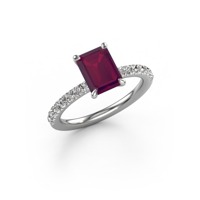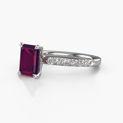 Der oben gezeigte Verlobungsring wird Crystal EME 2 genannt. Wir nennen das einen Solitär-Ring, denn er hat einen einzelnen Edelstein. Es ist ein Platin Verlobungsring, mit 8x6 mm smaragd schliff Rhodolit. Dieser exklusive Platin Solitär-Ring mit exquisitem, smaragd schliff Rhodolit ist ein schöner Verlobungsring. Die offenen Krappen ermöglichen, dass Licht aus mehr Winkeln auf den Edelstein trifft. Der Ring besticht auch durch die hohe Positionierung des Edelsteins. Denn Rhodolit symbolisieren wahre Liebe und Reinheit und machen sie damit zum perfekten Geschenk für die Liebe Ihres Lebens. Das Symbol der ewigen Liebe ist das Herzstück dieses Solitär-Rings. Wie ein Rhodolit haben auch alle anderen Arten von Edelmetallen ihre eigenen, zugeschriebenen symbolischen Bedeutungen. Diese Pavé Solitär Verlobungsring können Sie selbst zusammenstellen in verschiedenen Edelmetall Kombinationen. Dieser hat die Kombination Platin mit Platin. Jedes Schmuckstück wird von unseren Meister-Goldschmieden in unserem eigenen Studio für Sie gefertigt.Durch die Kombination modernster Technik mit uralter Handwerkskunst können wir alle Verlobungsringe in unserem eigenen Studio anfertigen. Jedes Schmuckstück wird auf Anfrage gefertigt. Das ist vorteilhaft, weil wir Ihnen dadurch einen Preis anbieten können, den Sie nirgendwo anders finden.Unser Team fügt unserer Online-Kollektion täglich neue Designs hinzu. Unsere Designer und Goldschmiede arbeiten zusammen, um das beste Design zu kreieren. Wir bemühen uns, eine vielfältige Kollektion von Schmuckstücken anzubieten. Vielleicht haben Sie ein bestimmtes Design im Sinn. Eines, dass Sie irgendwo gesehen haben. Gerne geben wir Ihnen eine kostenlose Beratung. Wir machen Ihnen ein Angebot, basierend auf einem fairen Preis/Leistungsverhältnis, das Sie verblüffen wird.Um es einfacher zu machen, bieten wir eine kostenlose 30-tägige Rücksendung.