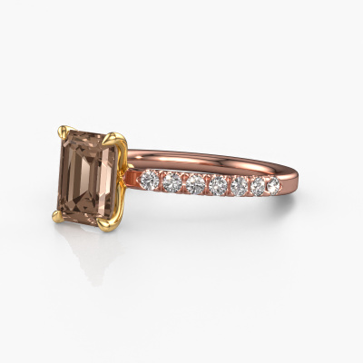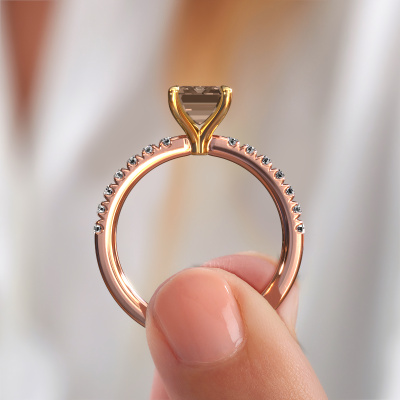 Der oben gezeigte Verlobungsring wird Crystal EME 2 genannt. Wir nennen das einen Solitär-Ring, denn er hat einen einzelnen Edelstein. Es ist ein 14 Karat Roségold Verlobungsring, mit 1.75 crt smaragd schliff Braun Diamant. Dieser exklusive Roségold Solitär-Ring mit exquisitem, smaragd schliff Braun Diamant ist ein schöner Verlobungsring. Die offenen Krappen ermöglichen, dass Licht aus mehr Winkeln auf den Edelstein trifft. Der Ring besticht auch durch die hohe Positionierung des Edelsteins. Denn Braun Diamant symbolisieren wahre Liebe und Reinheit und machen sie damit zum perfekten Geschenk für die Liebe Ihres Lebens. Das Symbol der ewigen Liebe ist das Herzstück dieses Solitär-Rings. Wie ein Braun Diamant haben auch alle anderen Arten von Edelmetallen ihre eigenen, zugeschriebenen symbolischen Bedeutungen. Diese Pavé Solitär Verlobungsring können Sie selbst zusammenstellen in verschiedenen Edelmetall Kombinationen. Dieser hat die Kombination 14 Karat Roségold mit Gold. Jedes Schmuckstück wird von unseren Meister-Goldschmieden in unserem eigenen Studio für Sie gefertigt.Durch die Kombination modernster Technik mit uralter Handwerkskunst können wir alle Verlobungsringe in unserem eigenen Studio anfertigen. Jedes Schmuckstück wird auf Anfrage gefertigt. Das ist vorteilhaft, weil wir Ihnen dadurch einen Preis anbieten können, den Sie nirgendwo anders finden.Unser Team fügt unserer Online-Kollektion täglich neue Designs hinzu. Unsere Designer und Goldschmiede arbeiten zusammen, um das beste Design zu kreieren. Wir bemühen uns, eine vielfältige Kollektion von Schmuckstücken anzubieten. Vielleicht haben Sie ein bestimmtes Design im Sinn. Eines, dass Sie irgendwo gesehen haben. Gerne geben wir Ihnen eine kostenlose Beratung. Wir machen Ihnen ein Angebot, basierend auf einem fairen Preis/Leistungsverhältnis, das Sie verblüffen wird.Um es einfacher zu machen, bieten wir eine kostenlose 30-tägige Rücksendung.