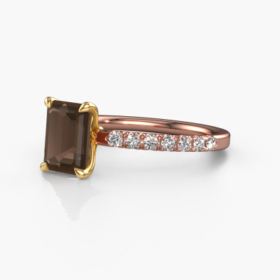 Der oben gezeigte Verlobungsring wird Crystal EME 2 genannt. Wir nennen das einen Solitär-Ring, denn er hat einen einzelnen Edelstein. Es ist ein 14 Karat Roségold Verlobungsring, mit 8x6 mm smaragd schliff Rauchquarz. Dieser exklusive Roségold Solitär-Ring mit exquisitem, smaragd schliff Rauchquarz ist ein schöner Verlobungsring. Die offenen Krappen ermöglichen, dass Licht aus mehr Winkeln auf den Edelstein trifft. Der Ring besticht auch durch die hohe Positionierung des Edelsteins. Denn Rauchquarz symbolisieren wahre Liebe und Reinheit und machen sie damit zum perfekten Geschenk für die Liebe Ihres Lebens. Das Symbol der ewigen Liebe ist das Herzstück dieses Solitär-Rings. Wie ein Rauchquarz haben auch alle anderen Arten von Edelmetallen ihre eigenen, zugeschriebenen symbolischen Bedeutungen. Diese Pavé Solitär Verlobungsring können Sie selbst zusammenstellen in verschiedenen Edelmetall Kombinationen. Dieser hat die Kombination 14 Karat Roségold mit Gold. Jedes Schmuckstück wird von unseren Meister-Goldschmieden in unserem eigenen Studio für Sie gefertigt.Durch die Kombination modernster Technik mit uralter Handwerkskunst können wir alle Verlobungsringe in unserem eigenen Studio anfertigen. Jedes Schmuckstück wird auf Anfrage gefertigt. Das ist vorteilhaft, weil wir Ihnen dadurch einen Preis anbieten können, den Sie nirgendwo anders finden.Unser Team fügt unserer Online-Kollektion täglich neue Designs hinzu. Unsere Designer und Goldschmiede arbeiten zusammen, um das beste Design zu kreieren. Wir bemühen uns, eine vielfältige Kollektion von Schmuckstücken anzubieten. Vielleicht haben Sie ein bestimmtes Design im Sinn. Eines, dass Sie irgendwo gesehen haben. Gerne geben wir Ihnen eine kostenlose Beratung. Wir machen Ihnen ein Angebot, basierend auf einem fairen Preis/Leistungsverhältnis, das Sie verblüffen wird.Um es einfacher zu machen, bieten wir eine kostenlose 30-tägige Rücksendung.