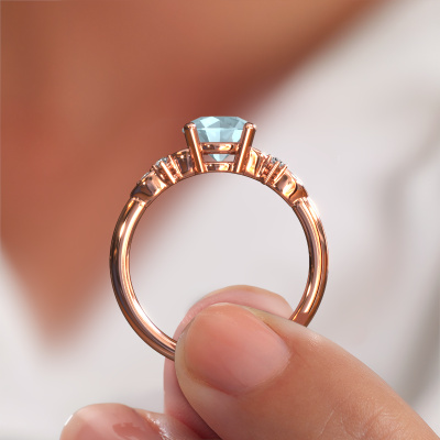 Dieser Verlobungsring aus 14 Karat Roségold mit Aquamarin heißt Azra RND. Halten Sie mit den neuesten Modetrends Schritt? Möchten Sie einen einzigartigen Verlobungsring, der zu Ihrem Lebensstil passt? Dieser geschmackvolle Verlobungsring ist ein außergewöhnlicher Ring, der individuell an Ihren persönlichen Stil angepasst werden kann. Dieser Fantasie, Roségold Verlobungsring ist mit Aquamarins besetzt. Diese Aquamarins werden sorgfältig für diesen speziellen Ring ausgewählt, um mit ihm den besten Effekt zu erzielen. Unser erfahrener Juwelier kreiert Ihren Ring in unserem eigenen Studio, wo der Aquamarin mit großer Sorgfalt eingefasst wird. Der Ring wird dann bis zur Perfektion bearbeitet und poliert. Nichts als das Beste für die Liebe Ihres Lebens! Jedes Schmuckstück wird hergestellt mit Leidenschaft und Liebe, von einem unserer Meister-Goldschmiede.Mit unserer modernen Technik können wir Schmuckstücke von höchster Qualität mit größter Sorgfalt für Sie entwerfen und anpassen. Unsere Verlobungsringe sind immer um 30 Prozent günstiger als bei anderen Juwelieren. Wir fertigen Verlobungsringe auf Bestellung, also müssen wir keine großen Lager unterhalten. Wenn Sie ein bestimmtes Budget haben, beraten wir Sie gerne entsprechend.Verschiedene Arten von neuen Ringen werden täglich von unserem Team angefertigt. Vielleicht haben Sie irgendwo einen Pavé Solitär Verlobungsring gefunden. Einen, den Sie Ihrem Liebsten schenken möchten. Bitte zögern Sie nicht, unseren Schmuckdesignern Ihre Gedanken und Ihr Design zu zeigen. Wir würden gerne Ihr Design in einen Fantasie Verlobungsring verwandeln. Sie können die Entwicklungen Ihres Ringdesigns verfolgen, da wir sehr detaillierte 3D-Zeichnungen verwenden. Darüber hinaus können Sie einen Dummy des Designs bestellen. Ein Dummy ist ein Kunststoffring, der nach Ihrem Ringdesign gestaltet werden kann. Sie können ihn anprobieren und prüfen, ob der Verlobungsring Ihren Vorstellungen entspricht. Wir senden Ihnen gerne ein unverbindliches Angebot zu einem fairen Preis/Leistungsverhältnis. Das Angebot wird Sie angesichts der Qualität des Rings und der Edelsteine verblüffen.Um es einfacher zu machen, bieten wir eine kostenlose 30-tägige Rücksendung.