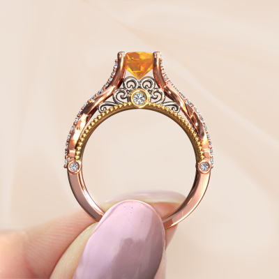 Dieser gewagte Verlobungsring aus 14 Karat Roségold heißt Chantelle und hat 6.5 mm Citrin. Ist Ihre Freundin von Vintage begeistert? Dann wird dieser Roségold Verlobungsring sicherlich perfekt zu ihrem Stil passen. Ein trendiger Ring mit einem Hauch von klassischem Schmuck. Ein wirklich atemberaubendes, romantisches Design! Vor allem, wenn Sie den Ring nach ihren Wünschen anpassen. Dieser Vintage Pavé Solitär Verlobungsring ist mit atemberaubenden Citrin besetzt. Wie Sie sehen können, sind Sie der Boss bei der Auswahl des Edelsteins, der am besten zu Ihrer Freundin passt. Jeder Edelstein wird sorgfältig von unseren Händlern ausgewählt, die auf der ganzen Welt verteilt sind. Nichts als die besten Edelsteine für unseren erfahrenen Juwelier! Schließlich ist es seine Krönung! Jedes Schmuckstück wird hergestellt von einem Team leidenschaftlicher Goldschmiede und Schmuckdesigner. Das wird Ihr Kronjuwel unbedingt zu einem Blickfang machen.Haben Sie ein bestimmtes Budget? Sie können uns gerne kontaktieren, damit wir Ihre Optionen besprechen können. Wir bieten unsere Verlobungsringe zum garantiert besten Preis, denn wir fertigen sie auf Bestellung. Solche Preise finden Sie nirgendwo anders!Unsere Designer und Goldschmiede arbeiten jeden Tag zusammen und versuchen, neue Schmuckstücke zu kreieren. Vielleicht haben Sie irgendwo einen schönen, Vintage Verlobungsring gefunden, nach dem Ihr einzigartiger Ring gestaltet werden kann. Setzen Sie sich mit uns in Verbindung. Wir machen Ihnen ein Angebot, basierend auf einem fairen Preis/Leistungsverhältnis, das Sie begeistern wird.Um es einfacher zu machen, bieten wir eine kostenlose 30-tägige Rücksendung.