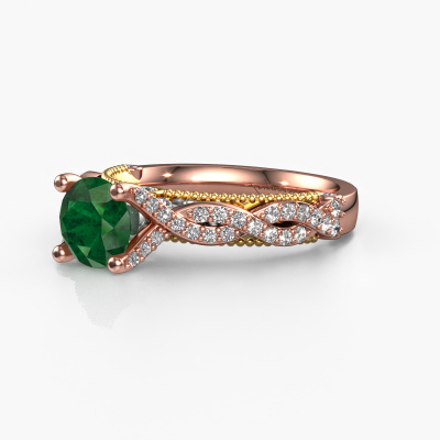 Dieser gewagte Verlobungsring aus 14 Karat Roségold heißt Chantelle und hat 6.5 mm Smaragd. Ist Ihre Freundin von Vintage begeistert? Dann wird dieser Roségold Verlobungsring sicherlich perfekt zu ihrem Stil passen. Ein trendiger Ring mit einem Hauch von klassischem Schmuck. Ein wirklich atemberaubendes, romantisches Design! Vor allem, wenn Sie den Ring nach ihren Wünschen anpassen. Dieser Vintage Pavé Solitär Verlobungsring ist mit atemberaubenden Smaragd besetzt. Wie Sie sehen können, sind Sie der Boss bei der Auswahl des Edelsteins, der am besten zu Ihrer Freundin passt. Jeder Edelstein wird sorgfältig von unseren Händlern ausgewählt, die auf der ganzen Welt verteilt sind. Nichts als die besten Edelsteine für unseren erfahrenen Juwelier! Schließlich ist es seine Krönung! Jedes Schmuckstück wird hergestellt von einem Team leidenschaftlicher Goldschmiede und Schmuckdesigner. Das wird Ihr Kronjuwel unbedingt zu einem Blickfang machen.Haben Sie ein bestimmtes Budget? Sie können uns gerne kontaktieren, damit wir Ihre Optionen besprechen können. Wir bieten unsere Verlobungsringe zum garantiert besten Preis, denn wir fertigen sie auf Bestellung. Solche Preise finden Sie nirgendwo anders!Unsere Designer und Goldschmiede arbeiten jeden Tag zusammen und versuchen, neue Schmuckstücke zu kreieren. Vielleicht haben Sie irgendwo einen schönen, Vintage Verlobungsring gefunden, nach dem Ihr einzigartiger Ring gestaltet werden kann. Setzen Sie sich mit uns in Verbindung. Wir machen Ihnen ein Angebot, basierend auf einem fairen Preis/Leistungsverhältnis, das Sie begeistern wird.Um es einfacher zu machen, bieten wir eine kostenlose 30-tägige Rücksendung.
