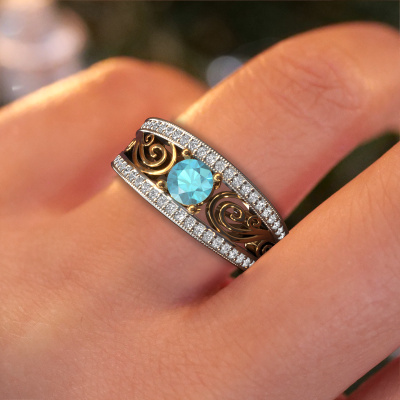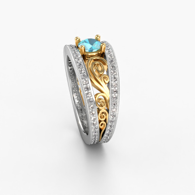 Dieser Filigrane Verlobungsring aus 14 Karat Weißgold mit 5 mm Blau Topas heißt Julliana. Für Sie gibt es nur eine Person in Ihrem Leben, die in einer Menschenmenge auffällt. Nur eine, die Ihr Herz höherschlagen lässt. Ein wahres Juwel! Sie verdient vor allem ein besonderes Geschenk. Ein einzigartiges, maßgefertigtes Schmuckstück, das allein zu ihren Ehren angefertigt wurde. Wir glauben, dass dieser Ring perfekt für Ihren besonderen Moment ist. Jedes Detail dieses exklusiven, Weißgold Pavé Solitär Verlobungsring wird von Hand ausgewählt, bearbeitet und poliert - von unserem erfahrenen Juwelier in unserem eigenen Studio. Wir streben nach dem perfekten Design und der Zusammensetzung des Rings, damit er die einzigartigen Eigenschaften unserer Blaue Topas unterstreicht und sie noch heller erstrahlen lässt. Es braucht viel Präzision, aber am Ende zahlt es sich wegen der Schönheit des Rings aus. Und das ist unser Hauptziel. Das ist es, was uns begeistert. Das Besondere an unserem Konfigurator ist dass Sie selbst einem Schmuckstück zusammenstellen können zu einem eigenen persönlichen Schmuckstück. Dieser Pavé Solitär Verlobungsring ist gefertigt in der Edelmetall Kombination Weißgold mit Gold, aber Sie können also auch wählen aus anderen Farben. Jedes Schmuckstück wird von unseren Meister-Goldschmieden in unserem eigenen Studio für Sie gefertigt.. Mit unserer modernen Technik können wir Schmuckstücke von höchster Qualität mit größter Sorgfalt für Sie entwerfen und anpassen. Unsere Verlobungsringe sind immer um 30 Prozent günstiger als bei anderen Juwelieren. Wir fertigen Verlobungsringe auf Bestellung, also müssen wir keine großen Lager unterhalten. Wenn Sie ein bestimmtes Budget haben, beraten wir Sie gerne entsprechend.Unser Team fügt unserer Online-Kollektion täglich neue Designs hinzu. Unsere Designer und Goldschmiede arbeiten zusammen, um das beste Design zu kreieren. Wir bemühen uns, eine vielfältige Kollektion von Schmuckstücken anzubieten. Vielleicht haben Sie ein bestimmtes Design im Sinn. Eines, dass Sie irgendwo gesehen haben. Gerne geben wir Ihnen eine kostenlose Beratung. Wir machen Ihnen ein Angebot, basierend auf einem fairen Preis/Leistungsverhältnis, das Sie verblüffen wird.Um es einfacher zu machen, bieten wir eine kostenlose 30-tägige Rücksendung.