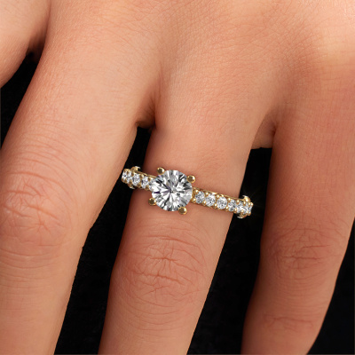 Dieser besondere Verlobungsring aus 14 Karat Gold mit 1.50 crt Diamant heißt Shaunda. Für Sie gibt es nur eine Person in Ihrem Leben, die in einer Menschenmenge auffällt. Nur eine, die Ihr Herz höherschlagen lässt. Ein wahres Juwel! Sie verdient vor allem ein besonderes Geschenk. Ein einzigartiges, maßgefertigtes Schmuckstück, das allein zu ihren Ehren angefertigt wurde. Wir glauben, dass dieser Ring perfekt für Ihren besonderen Moment ist. Jedes Detail dieses exklusiven, Gold Pavé Solitär Verlobungsring wird von Hand ausgewählt, bearbeitet und poliert - von unserem erfahrenen Juwelier in unserem eigenen Studio. Wir streben nach dem perfekten Design und der Zusammensetzung des Rings, damit er die einzigartigen Eigenschaften unserer Diamanten unterstreicht und sie noch heller erstrahlen lässt. Es braucht viel Präzision, aber am Ende zahlt es sich wegen der Schönheit des Rings aus. Und das ist unser Hauptziel. Das ist es, was uns begeistert. Das Besondere an unserem Konfigurator ist dass Sie selbst einem Schmuckstück zusammenstellen können zu einem eigenen persönlichen Schmuckstück. Dieser Pavé Solitär Verlobungsring ist gefertigt in der Edelmetall Kombination Gold mit Gold, aber Sie können also auch wählen aus anderen Farben. Jedes Schmuckstück lässt Ihren Finger erstrahlen. Ihr Ring ist mit Liebe von unseren Goldschmieden handgefertigt.. Durch die Kombination modernster Technik mit uralter Handwerkskunst können wir alle Verlobungsringe in unserem eigenen Studio anfertigen. Jedes Schmuckstück wird auf Anfrage gefertigt. Das ist vorteilhaft, weil wir Ihnen dadurch einen Preis anbieten können, den Sie nirgendwo anders finden.Unsere Designer und Goldschmiede arbeiten jeden Tag zusammen und versuchen, neue Schmuckstücke zu kreieren. Vielleicht haben Sie irgendwo einen schönen, Vintage Verlobungsring gefunden, nach dem Ihr einzigartiger Ring gestaltet werden kann. Setzen Sie sich mit uns in Verbindung. Wir machen Ihnen ein Angebot, basierend auf einem fairen Preis/Leistungsverhältnis, das Sie begeistern wird.Um es einfacher zu machen, bieten wir eine kostenlose 30-tägige Rücksendung.