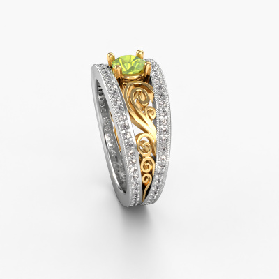 Dieser Filigrane Verlobungsring aus 14 Karat Weißgold mit 5 mm Peridot heißt Julliana. Für Sie gibt es nur eine Person in Ihrem Leben, die in einer Menschenmenge auffällt. Nur eine, die Ihr Herz höherschlagen lässt. Ein wahres Juwel! Sie verdient vor allem ein besonderes Geschenk. Ein einzigartiges, maßgefertigtes Schmuckstück, das allein zu ihren Ehren angefertigt wurde. Wir glauben, dass dieser Ring perfekt für Ihren besonderen Moment ist. Jedes Detail dieses exklusiven, Weißgold Pavé Solitär Verlobungsring wird von Hand ausgewählt, bearbeitet und poliert - von unserem erfahrenen Juwelier in unserem eigenen Studio. Wir streben nach dem perfekten Design und der Zusammensetzung des Rings, damit er die einzigartigen Eigenschaften unserer Peridot unterstreicht und sie noch heller erstrahlen lässt. Es braucht viel Präzision, aber am Ende zahlt es sich wegen der Schönheit des Rings aus. Und das ist unser Hauptziel. Das ist es, was uns begeistert. Das Besondere an unserem Konfigurator ist dass Sie selbst einem Schmuckstück zusammenstellen können zu einem eigenen persönlichen Schmuckstück. Dieser Pavé Solitär Verlobungsring ist gefertigt in der Edelmetall Kombination Weißgold mit Gold, aber Sie können also auch wählen aus anderen Farben. Jedes Schmuckstück wird von unseren Meister-Goldschmieden in unserem eigenen Studio für Sie gefertigt.. Mit unserer modernen Technik können wir Schmuckstücke von höchster Qualität mit größter Sorgfalt für Sie entwerfen und anpassen. Unsere Verlobungsringe sind immer um 30 Prozent günstiger als bei anderen Juwelieren. Wir fertigen Verlobungsringe auf Bestellung, also müssen wir keine großen Lager unterhalten. Wenn Sie ein bestimmtes Budget haben, beraten wir Sie gerne entsprechend.Unser Team fügt unserer Online-Kollektion täglich neue Designs hinzu. Unsere Designer und Goldschmiede arbeiten zusammen, um das beste Design zu kreieren. Wir bemühen uns, eine vielfältige Kollektion von Schmuckstücken anzubieten. Vielleicht haben Sie ein bestimmtes Design im Sinn. Eines, dass Sie irgendwo gesehen haben. Gerne geben wir Ihnen eine kostenlose Beratung. Wir machen Ihnen ein Angebot, basierend auf einem fairen Preis/Leistungsverhältnis, das Sie verblüffen wird.Um es einfacher zu machen, bieten wir eine kostenlose 30-tägige Rücksendung.