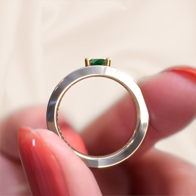 Dieser Filigrane Verlobungsring aus 14 Karat Weißgold mit 5 mm Smaragd heißt Julliana. Für Sie gibt es nur eine Person in Ihrem Leben, die in einer Menschenmenge auffällt. Nur eine, die Ihr Herz höherschlagen lässt. Ein wahres Juwel! Sie verdient vor allem ein besonderes Geschenk. Ein einzigartiges, maßgefertigtes Schmuckstück, das allein zu ihren Ehren angefertigt wurde. Wir glauben, dass dieser Ring perfekt für Ihren besonderen Moment ist. Jedes Detail dieses exklusiven, Weißgold Pavé Solitär Verlobungsring wird von Hand ausgewählt, bearbeitet und poliert - von unserem erfahrenen Juwelier in unserem eigenen Studio. Wir streben nach dem perfekten Design und der Zusammensetzung des Rings, damit er die einzigartigen Eigenschaften unserer Smaragd unterstreicht und sie noch heller erstrahlen lässt. Es braucht viel Präzision, aber am Ende zahlt es sich wegen der Schönheit des Rings aus. Und das ist unser Hauptziel. Das ist es, was uns begeistert. Das Besondere an unserem Konfigurator ist dass Sie selbst einem Schmuckstück zusammenstellen können zu einem eigenen persönlichen Schmuckstück. Dieser Pavé Solitär Verlobungsring ist gefertigt in der Edelmetall Kombination Weißgold mit Gold, aber Sie können also auch wählen aus anderen Farben. Jedes Schmuckstück wird von unseren Meister-Goldschmieden in unserem eigenen Studio für Sie gefertigt.. Mit unserer modernen Technik können wir Schmuckstücke von höchster Qualität mit größter Sorgfalt für Sie entwerfen und anpassen. Unsere Verlobungsringe sind immer um 30 Prozent günstiger als bei anderen Juwelieren. Wir fertigen Verlobungsringe auf Bestellung, also müssen wir keine großen Lager unterhalten. Wenn Sie ein bestimmtes Budget haben, beraten wir Sie gerne entsprechend.Unser Team fügt unserer Online-Kollektion täglich neue Designs hinzu. Unsere Designer und Goldschmiede arbeiten zusammen, um das beste Design zu kreieren. Wir bemühen uns, eine vielfältige Kollektion von Schmuckstücken anzubieten. Vielleicht haben Sie ein bestimmtes Design im Sinn. Eines, dass Sie irgendwo gesehen haben. Gerne geben wir Ihnen eine kostenlose Beratung. Wir machen Ihnen ein Angebot, basierend auf einem fairen Preis/Leistungsverhältnis, das Sie verblüffen wird.Um es einfacher zu machen, bieten wir eine kostenlose 30-tägige Rücksendung.