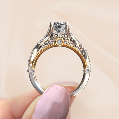 Dieser gewagte Verlobungsring aus 14 Karat Weißgold heißt Chantelle und hat 6.5 mm Zirkonia. Ist Ihre Freundin von Vintage begeistert? Dann wird dieser Weißgold Verlobungsring sicherlich perfekt zu ihrem Stil passen. Ein trendiger Ring mit einem Hauch von klassischem Schmuck. Ein wirklich atemberaubendes, romantisches Design! Vor allem, wenn Sie den Ring nach ihren Wünschen anpassen. Dieser Vintage Pavé Solitär Verlobungsring ist mit atemberaubenden Zirkonia besetzt. Wie Sie sehen können, sind Sie der Boss bei der Auswahl des Edelsteins, der am besten zu Ihrer Freundin passt. Jeder Edelstein wird sorgfältig von unseren Händlern ausgewählt, die auf der ganzen Welt verteilt sind. Nichts als die besten Edelsteine für unseren erfahrenen Juwelier! Schließlich ist es seine Krönung! Jedes Schmuckstück wird hergestellt von einem Team leidenschaftlicher Goldschmiede und Schmuckdesigner. Das wird Ihr Kronjuwel unbedingt zu einem Blickfang machen.Haben Sie ein bestimmtes Budget? Sie können uns gerne kontaktieren, damit wir Ihre Optionen besprechen können. Wir bieten unsere Verlobungsringe zum garantiert besten Preis, denn wir fertigen sie auf Bestellung. Solche Preise finden Sie nirgendwo anders!Unsere Designer und Goldschmiede arbeiten jeden Tag zusammen und versuchen, neue Schmuckstücke zu kreieren. Vielleicht haben Sie irgendwo einen schönen, Vintage Verlobungsring gefunden, nach dem Ihr einzigartiger Ring gestaltet werden kann. Setzen Sie sich mit uns in Verbindung. Wir machen Ihnen ein Angebot, basierend auf einem fairen Preis/Leistungsverhältnis, das Sie begeistern wird.Um es einfacher zu machen, bieten wir eine kostenlose 30-tägige Rücksendung.