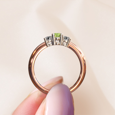 Dieser Verlobungsring aus 14 Karat Roségold heißt Karie. Wie würden Sie den Stil der Liebe Ihres Lebens beschreiben? Hat sie einen einzigartigen Sinn für Stil? Diese umwerfende, ajour Roségold Verlobungsring mit 5x3 mm Peridot kann nach Ihren Wünschen angefertigt werden. Unsere Peridot wurden sorgfältig ausgewählt. Denn wir denken, dass Ihr Verlobungsring nur mit dem schönsten Edelstein gekrönt werden darf. Sehen Sie das auch so? Jedes Schmuckstück wird von unseren Meister-Goldschmieden in unserem eigenen Studio für Sie gefertigt.Nach Erhalt Ihrer Bestellung beginnen unsere Goldschmiede mit Leidenschaft den kreativen Prozess und fertigen Ihren Verlobungsring in unserem eigenen Studio. Da wir keine großen Lager haben, werden diese Kosten nicht an Sie weitergegeben. Unsere Preisgestaltung ist der Beweis dafür! Wir bieten Schmuck zum niedrigsten Preis, garantiert.Haben Sie einen bestimmten Ring im Sinn? Eines, dass Sie irgendwo gesehen haben. Bitte zögern Sie nicht, uns zu sagen, was Sie wollen und wir werden Ihr Design in einen Einzigartigen Verlobungsring verwandeln. Sie können die Entwicklungen Ihres Ringdesigns verfolgen, da wir 3D-Zeichnungen verwenden. Das gibt Ihnen eine realistische Vorschau Ihres Designs. Wir senden Ihnen gerne ein unverbindliches Angebot zu einem fairen Preis/Leistungsverhältnis. Es wird Sie erstaunen.Um es einfacher zu machen, bieten wir eine kostenlose 30-tägige Rücksendung.