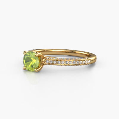 Der oben gezeigte Ring wird Elenore rnd genannt. Es ist ein Pavé Solitär Ring, da er einen zentralen Edelstein und ein Band mit Pavé-Fassung hat. Dieser 14 Karat Gold ring ist mit einem 5.4 mm rund Peridot-Mittelstein besetzt und das Band hat eine Pavé-Fassung mit Lab grown Diamant. Jedes Schmuckstück wird von unseren Meister-Goldschmieden in unserem eigenen Studio für Sie gefertigt.Dieser exklusive Gold Pavé Solitär Verlobungsring mit Pavé-Fassung hat einen exquisiten, rund Peridot als Mittelstein. Um den zentralen Stein noch mehr zu betonen, hat das Band eine Pavé-Fassung mit weiteren Lab grown Diamant. Durch die offenen Krappen kann das Licht aus mehreren Winkeln auf den Peridot treffen und der Peridot-Ring funkelt noch mehr. Das obere Foto zeigt die leidenschaftlich handgefertigten Details des Rings. Die hohe Positionierung der Mittelstein ist ein echter Blickfang. Der perfekte Verlobungsring für das Kronjuwel Ihres Lebens!Durch die Kombination modernster Technik mit uralter Handwerkskunst können wir alle Verlobungsringe in unserem eigenen Studio anfertigen. Jedes Schmuckstück wird auf Anfrage gefertigt. Das ist vorteilhaft, weil wir Ihnen dadurch einen Preis anbieten können, den Sie nirgendwo anders finden.Haben Sie irgendwo einen bestimmten Verlobungsring gefunden, den Sie Ihrem Liebsten schenken möchten? Sie können uns gerne sagen, was Sie wollen und wir werden Ihr Design in einen Einzigartigen exklusive Verlobungsring verwandeln. Sie können die Entwicklungen Ihres Ringdesigns verfolgen, da wir 3D-Zeichnungen verwenden. Das gibt Ihnen eine realistische Vorschau, wie Ihr Design aussehen wird. Sie können auch einen Dummy vorbestellen. Ein Dummy ist ein Kunststoffring, der nach Ihrem Ringdesign gestaltet werden kann. Sie können ihn anprobieren und prüfen, ob seine Breite und Größe für Sie geeignet sind. Wir senden Ihnen gerne ein unverbindliches Angebot zu einem fairen Preis/Leistungsverhältnis. Sie werden in Anbetracht der Qualität des Rings und der Edelsteine überrascht sein.Um es einfacher zu machen, bieten wir eine kostenlose 30-tägige Rücksendung.