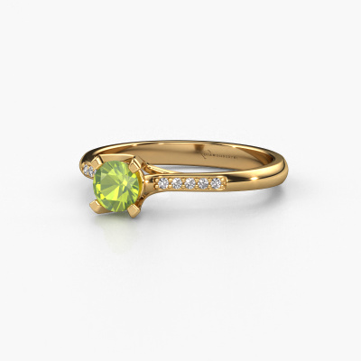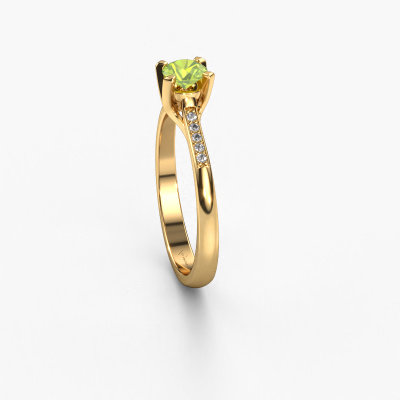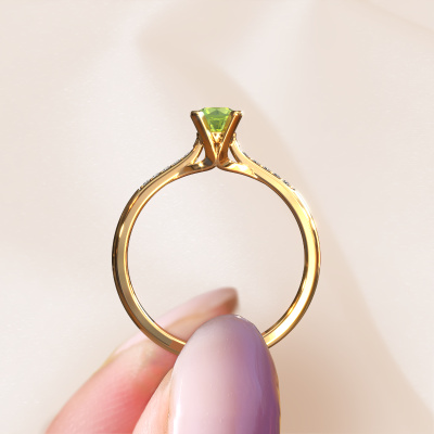 Der oben gezeigte Ring wird Isa 2 genannt. Es ist ein Pavé Solitär Ring, da er einen zentralen Edelstein und ein Band mit Pavé-Fassung hat. Dieser 14 Karat Gold ring ist mit einem 4.2 mm rund Peridot-Mittelstein besetzt und das Band hat eine Pavé-Fassung mit Diamanten. Jedes Schmuckstück ist um Ihrem Finger Glanz zu verleihen. Jeder Ring wird von unseren Goldschmieden liebevoll von Hand gefertigt.Dieser klassische Gold Pavé Solitär Verlobungsring mit Pavé-Fassung hat einen exquisiten, rund Peridot als Mittelstein. Um den zentralen Stein noch mehr zu betonen, hat das Band eine Pavé-Fassung mit weiteren Diamanten. Durch die offenen Krappen kann das Licht aus mehreren Winkeln auf den Peridot treffen und der Peridot-Ring funkelt noch mehr. Das obere Foto zeigt die leidenschaftlich handgefertigten Details des Rings. Die hohe Positionierung der Mittelstein ist ein echter Blickfang. Der perfekte Verlobungsring für das Kronjuwel Ihres Lebens!Nach Erhalt Ihrer Bestellung beginnen unsere Goldschmiede mit Leidenschaft den kreativen Prozess und fertigen Ihren Verlobungsring in unserem eigenen Studio. Da wir keine großen Lager haben, werden diese Kosten nicht an Sie weitergegeben. Unsere Preisgestaltung ist der Beweis dafür! Wir bieten Schmuck zum niedrigsten Preis, garantiert.Verschiedene Arten von neuen Ringen werden täglich von unserem Team angefertigt. Vielleicht haben Sie irgendwo einen Pavé Solitär Verlobungsring gefunden. Einen, den Sie Ihrem Liebsten schenken möchten. Bitte zögern Sie nicht, unseren Schmuckdesignern Ihre Gedanken und Ihr Design zu zeigen. Wir würden gerne Ihr Design in einen klassische Verlobungsring verwandeln. Sie können die Entwicklungen Ihres Ringdesigns verfolgen, da wir sehr detaillierte 3D-Zeichnungen verwenden. Darüber hinaus können Sie einen Dummy des Designs bestellen. Ein Dummy ist ein Kunststoffring, der nach Ihrem Ringdesign gestaltet werden kann. Sie können ihn anprobieren und prüfen, ob der Verlobungsring Ihren Vorstellungen entspricht. Wir senden Ihnen gerne ein unverbindliches Angebot zu einem fairen Preis/Leistungsverhältnis. Das Angebot wird Sie angesichts der Qualität des Rings und der Edelsteine verblüffen.Um es einfacher zu machen, bieten wir eine kostenlose 30-tägige Rücksendung.