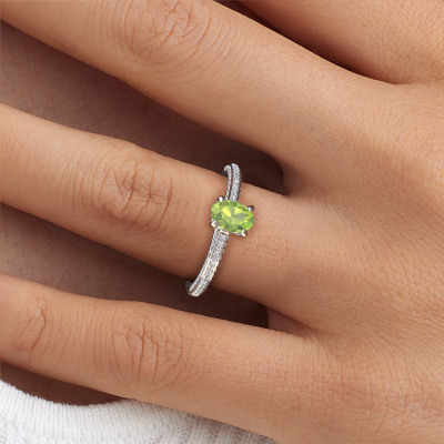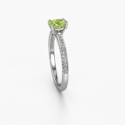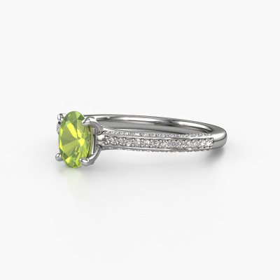 Der oben gezeigte Ring wird Elenore ovl genannt. Es ist ein Pavé Solitär Ring, da er einen zentralen Edelstein und ein Band mit Pavé-Fassung hat. Dieser Platin ring ist mit einem 6.5x4.5 mm oval Peridot-Mittelstein besetzt und das Band hat eine Pavé-Fassung mit Diamanten. Jedes Schmuckstück wird hergestellt von einem Team leidenschaftlicher Goldschmiede und Schmuckdesigner. Das wird Ihr Kronjuwel unbedingt zu einem Blickfang machen.Dieser exklusive Platin Pavé Solitär Verlobungsring mit Pavé-Fassung hat einen exquisiten, oval Peridot als Mittelstein. Um den zentralen Stein noch mehr zu betonen, hat das Band eine Pavé-Fassung mit weiteren Diamanten. Durch die offenen Krappen kann das Licht aus mehreren Winkeln auf den Peridot treffen und der Peridot-Ring funkelt noch mehr. Das obere Foto zeigt die leidenschaftlich handgefertigten Details des Rings. Die hohe Positionierung der Mittelstein ist ein echter Blickfang. Der perfekte Verlobungsring für das Kronjuwel Ihres Lebens!Nachdem Sie Ihre Bestellung aufgegeben haben, beginnen unsere Goldschmiede mit dem kreativen Prozess der Herstellung Ihres Elenore ovl Verlobungsring. Wir haben keine Lager. Das ist vorteilhaft, da diese Kosten nicht an Sie weitergegeben werden. Daher sind wir in der Lage, Schmuck zu außergewöhnlich niedrigen Preisen anzubieten.Haben Sie irgendwo einen bestimmten Verlobungsring gefunden, den Sie Ihrem Liebsten schenken möchten? Sie können uns gerne sagen, was Sie wollen und wir werden Ihr Design in einen Einzigartigen exklusive Verlobungsring verwandeln. Sie können die Entwicklungen Ihres Ringdesigns verfolgen, da wir 3D-Zeichnungen verwenden. Das gibt Ihnen eine realistische Vorschau, wie Ihr Design aussehen wird. Sie können auch einen Dummy vorbestellen. Ein Dummy ist ein Kunststoffring, der nach Ihrem Ringdesign gestaltet werden kann. Sie können ihn anprobieren und prüfen, ob seine Breite und Größe für Sie geeignet sind. Wir senden Ihnen gerne ein unverbindliches Angebot zu einem fairen Preis/Leistungsverhältnis. Sie werden in Anbetracht der Qualität des Rings und der Edelsteine überrascht sein.Um es einfacher zu machen, bieten wir eine kostenlose 30-tägige Rücksendung.