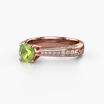 Der oben gezeigte Ring wird Ruby rnd genannt. Es ist ein Pavé Solitär Ring, da er einen zentralen Edelstein und ein Band mit Pavé-Fassung hat. Dieser 14 Karat Roségold ring ist mit einem 5.7 mm rund Peridot-Mittelstein besetzt und das Band hat eine Pavé-Fassung mit Diamanten. Jedes Schmuckstück wird nur für Sie persönlich hergestellt, mit Liebe zum Detail und Design.Dieser exklusive Roségold Pavé Solitär Verlobungsring mit Pavé-Fassung hat einen exquisiten, rund Peridot als Mittelstein. Um den zentralen Stein noch mehr zu betonen, hat das Band eine Pavé-Fassung mit weiteren Diamanten. Durch die offenen Krappen kann das Licht aus mehreren Winkeln auf den Peridot treffen und der Peridot-Ring funkelt noch mehr. Das obere Foto zeigt die leidenschaftlich handgefertigten Details des Rings. Die hohe Positionierung der Mittelstein ist ein echter Blickfang. Der perfekte Verlobungsring für das Kronjuwel Ihres Lebens!Da wir unsere eigenen Ringe entwerfen und liefern, können wir Ihnen einen Verlobungsring zu einem Preis anbieten, den Sie nirgendwo anders finden. Ein Ring wird auf Bestellung angefertigt, wodurch kein überschüssiges Material anfällt. So können wir Ihnen ein gutes Angebot zum besten Preis machen. Wir verstehen, dass es sich riskant anfühlt, Ihren Verlobungsring online zu kaufen. Jedoch helfen wir Ihnen gerne beim Designprozess unter Berücksichtigung Ihres Budgets.Haben Sie einen bestimmten Ring im Sinn? Eines, dass Sie irgendwo gesehen haben. Bitte zögern Sie nicht, uns zu sagen, was Sie wollen und wir werden Ihr Design in einen Einzigartigen Verlobungsring verwandeln. Sie können die Entwicklungen Ihres Ringdesigns verfolgen, da wir 3D-Zeichnungen verwenden. Das gibt Ihnen eine realistische Vorschau Ihres Designs. Wir senden Ihnen gerne ein unverbindliches Angebot zu einem fairen Preis/Leistungsverhältnis. Es wird Sie erstaunen.Um es einfacher zu machen, bieten wir eine kostenlose 30-tägige Rücksendung.
