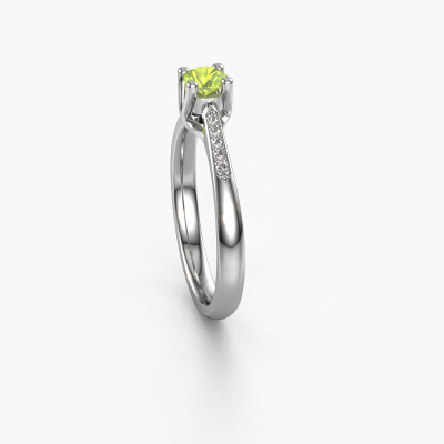 Der oben gezeigte Ring wird Janna 2 genannt. Es ist ein Pavé Solitär Ring, da er einen zentralen Edelstein und ein Band mit Pavé-Fassung hat. Dieser 14 Karat Weißgold ring ist mit einem 4 mm rund Peridot-Mittelstein besetzt und das Band hat eine Pavé-Fassung mit Diamanten. Jedes Schmuckstück wird von unseren Meister-Goldschmieden in unserem eigenen Studio für Sie gefertigt.Dieser klassische Weißgold Pavé Solitär Verlobungsring mit Pavé-Fassung hat einen exquisiten, rund Peridot als Mittelstein. Um den zentralen Stein noch mehr zu betonen, hat das Band eine Pavé-Fassung mit weiteren Diamanten. Durch die offenen Krappen kann das Licht aus mehreren Winkeln auf den Peridot treffen und der Peridot-Ring funkelt noch mehr. Das obere Foto zeigt die leidenschaftlich handgefertigten Details des Rings. Die hohe Positionierung der Mittelstein ist ein echter Blickfang. Der perfekte Verlobungsring für das Kronjuwel Ihres Lebens!Durch die Kombination modernster Technik mit uralter Handwerkskunst können wir alle Verlobungsringe in unserem eigenen Studio anfertigen. Jedes Schmuckstück wird auf Anfrage gefertigt. Das ist vorteilhaft, weil wir Ihnen dadurch einen Preis anbieten können, den Sie nirgendwo anders finden.Haben Sie einen bestimmten Ring im Sinn? Eines, dass Sie irgendwo gesehen haben. Bitte zögern Sie nicht, uns zu sagen, was Sie wollen und wir werden Ihr Design in einen Einzigartigen Verlobungsring verwandeln. Sie können die Entwicklungen Ihres Ringdesigns verfolgen, da wir 3D-Zeichnungen verwenden. Das gibt Ihnen eine realistische Vorschau Ihres Designs. Wir senden Ihnen gerne ein unverbindliches Angebot zu einem fairen Preis/Leistungsverhältnis. Es wird Sie erstaunen.Um es einfacher zu machen, bieten wir eine kostenlose 30-tägige Rücksendung.
