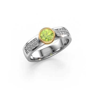 Der oben gezeigte Weißgold Verlobungsring wird Ise 3 genannt. Es ist ein Pavé Solitär Ring, da er einen zentralen Edelstein und ein Band mit Pavé-Fassung hat. Der moderne Pavé Solitär Verlobungsring ist in der Kombination 14 Karat Weißgold mit Gold und ist mit einem rund 4.7 mm Peridot-Mittelstein besetzt und das Band hat eine Pavé-Fassung mit Diamanten. Jedes Schmuckstück wird von unseren Meister-Goldschmieden in unserem eigenen Studio für Sie gefertigt. Um den zentralen Stein noch mehr zu betonen, hat das Band eine Pavé-Fassung mit weiteren Peridot. Durch die offenen Krappen kann das Licht aus mehreren Winkeln auf den Peridot treffen und der Peridot-Ring funkelt noch mehr. Das obere Foto zeigt die leidenschaftlich handgefertigten Details des Rings. Die hohe Positionierung der Mittelstein ist ein echter Blickfang. Der perfekte Verlobungsring für das Kronjuwel Ihres Lebens!Da wir unsere eigenen Ringe entwerfen und liefern, können wir Ihnen einen Verlobungsring zu einem Preis anbieten, den Sie nirgendwo anders finden. Ein Ring wird auf Bestellung angefertigt, wodurch kein überschüssiges Material anfällt. So können wir Ihnen ein gutes Angebot zum besten Preis machen. Wir verstehen, dass es sich riskant anfühlt, Ihren Verlobungsring online zu kaufen. Jedoch helfen wir Ihnen gerne beim Designprozess unter Berücksichtigung Ihres Budgets.Unser Team fügt unserer Online-Kollektion täglich neue Designs hinzu. Unsere Designer und Goldschmiede arbeiten zusammen, um das beste Design zu kreieren. Wir bemühen uns, eine vielfältige Kollektion von Schmuckstücken anzubieten. Vielleicht haben Sie ein bestimmtes Design im Sinn. Eines, dass Sie irgendwo gesehen haben. Gerne geben wir Ihnen eine kostenlose Beratung. Wir machen Ihnen ein Angebot, basierend auf einem fairen Preis/Leistungsverhältnis, das Sie verblüffen wird.Um es einfacher zu machen, bieten wir eine kostenlose 30-tägige Rücksendung.