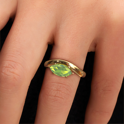 Dieser Verlobungsring aus 14 Karat Gold mit 11x5.5 mm Peridot heißt Floor MRQ. Was macht Ihre Beziehung einzigartig? Was hat sie an sich, was Sie dazu bringt, auf die Knie zu fallen? Die einzigartige Verbindung zwischen Ihnen beiden wird durch