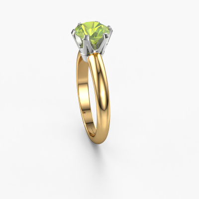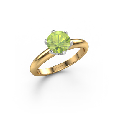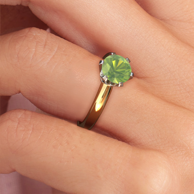 Der oben gezeigte Verlobungsring wird Tiffy 1 genannt. Wir nennen das einen Solitär-Ring, denn er hat einen einzelnen Edelstein. Es ist ein 14 Karat Gold ring, mit 7 mm rund Peridot. Das Besondere an unserem Konfigurator ist dass Sie selbst einem Schmuckstück zusammenstellen können zu einem eigenen persönlichen Schmuckstück. Dieser Solitäre Verlobungsring ist gefertigt in der Edelmetall Kombination Gold mit Weißgold, aber Sie können also auch wählen aus anderen Farben. Jedes Schmuckstück wird nur für Sie persönlich hergestellt, mit Liebe zum Detail und Design. Der Solitär-Verlobungsring ist eine Sonderform des Verlobungsring. Seine offenen Krappen ermöglichen, dass Licht aus mehr Winkeln auf den Edelstein trifft. Dieser klassische Verlobungsring ist durch die hohe Positionierung des Edelsteins ein atemberaubender Blickfang. Wir schmücken diesen Solitär-Ring sorgfältig von Hand, damit Sie Ihren Anfrage mit einem einzigartigen Ring würdigen können. Die Liebe Ihres Lebens verdient nur das Beste. Mit unserer modernen Technik können wir Schmuckstücke von höchster Qualität mit größter Sorgfalt für Sie entwerfen und anpassen. Unsere Verlobungsringe sind immer um 30 Prozent günstiger als bei anderen Juwelieren. Wir fertigen Verlobungsringe auf Bestellung, also müssen wir keine großen Lager unterhalten. Wenn Sie ein bestimmtes Budget haben, beraten wir Sie gerne entsprechend.Unsere Designer und Goldschmiede arbeiten jeden Tag zusammen und versuchen, neue Schmuckstücke zu kreieren. Vielleicht haben Sie irgendwo einen schönen, klassische Verlobungsring gefunden, nach dem Ihr einzigartiger Ring gestaltet werden kann. Setzen Sie sich mit uns in Verbindung. Wir machen Ihnen ein Angebot, basierend auf einem fairen Preis/Leistungsverhältnis, das Sie begeistern wird.Um es einfacher zu machen, bieten wir eine kostenlose 30-tägige Rücksendung.