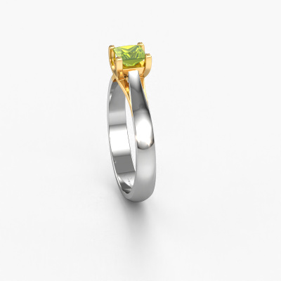 Der oben gezeigte Verlobungsring wird Mia Square genannt. Wir nennen das einen Solitär-Ring, denn er hat einen einzelnen Edelstein. Es ist ein 14 Karat Weißgold ring, mit 4 mm princess Peridot. Das Besondere an unserem Konfigurator ist dass Sie selbst einem Schmuckstück zusammenstellen können zu einem eigenen persönlichen Schmuckstück. Dieser Solitäre Verlobungsring ist gefertigt in der Edelmetall Kombination Weißgold mit Gold, aber Sie können also auch wählen aus anderen Farben. Jedes Schmuckstück wird hergestellt von einem Team leidenschaftlicher Goldschmiede und Schmuckdesigner. Das wird Ihr Kronjuwel unbedingt zu einem Blickfang machen. Der Solitär-Verlobungsring ist eine Sonderform des Verlobungsring. Seine offenen Krappen ermöglichen, dass Licht aus mehr Winkeln auf den Edelstein trifft. Dieser moderne Verlobungsring ist durch die hohe Positionierung des Edelsteins ein atemberaubender Blickfang. Wir schmücken diesen Solitär-Ring sorgfältig von Hand, damit Sie Ihren Anfrage mit einem einzigartigen Ring würdigen können. Die Liebe Ihres Lebens verdient nur das Beste. Mit unserer modernen Technik können wir Schmuckstücke von höchster Qualität mit größter Sorgfalt für Sie entwerfen und anpassen. Unsere Verlobungsringe sind immer um 30 Prozent günstiger als bei anderen Juwelieren. Wir fertigen Verlobungsringe auf Bestellung, also müssen wir keine großen Lager unterhalten. Wenn Sie ein bestimmtes Budget haben, beraten wir Sie gerne entsprechend.Haben Sie irgendwo einen bestimmten Verlobungsring gefunden, den Sie Ihrem Liebsten schenken möchten? Sie können uns gerne sagen, was Sie wollen und wir werden Ihr Design in einen Einzigartigen moderne Verlobungsring verwandeln. Sie können die Entwicklungen Ihres Ringdesigns verfolgen, da wir 3D-Zeichnungen verwenden. Das gibt Ihnen eine realistische Vorschau, wie Ihr Design aussehen wird. Sie können auch einen Dummy vorbestellen. Ein Dummy ist ein Kunststoffring, der nach Ihrem Ringdesign gestaltet werden kann. Sie können ihn anprobieren und prüfen, ob seine Breite und Größe für Sie geeignet sind. Wir senden Ihnen gerne ein unverbindliches Angebot zu einem fairen Preis/Leistungsverhältnis. Sie werden in Anbetracht der Qualität des Rings und der Edelsteine überrascht sein.Um es einfacher zu machen, bieten wir eine kostenlose 30-tägige Rücksendung.