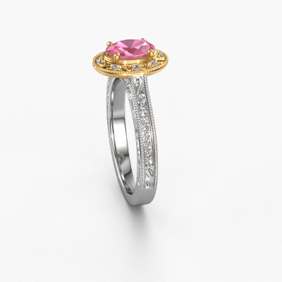 Dieser Verlobungsring aus 14 Karat Weißgold mit 7x5 mm Pink Saphir heißt Alice OVL. Was macht Ihre Beziehung einzigartig? Was hat sie an sich, was Sie dazu bringt, auf die Knie zu fallen? Die einzigartige Verbindung zwischen Ihnen beiden wird durch einen ebenso einzigartigen Ring unterstrichen. Ein einzigartiger Halo Verlobungsring, der nur für sie gemacht wurde. Deshalb passt dieser Ring wie angegossen. Jedes einzelne Detail dieses Filigrane, Weißgold Pink Saphir Verlobungsring wird von unserem erfahrenen Goldschmieden in unserem eigenen Studio von Hand ausgesucht, bearbeitet und poliert. Das Endprodukt ist ein exquisiter Ring, einzigartig und bis zur Perfektion gebracht. Danach streben unsere erfahrenen Juweliere. Jedes Schmuckstück wird hergestellt mit Leidenschaft und Liebe, von einem unserer Meister-Goldschmiede.Mit unserer modernen Technik können wir Schmuckstücke von höchster Qualität mit größter Sorgfalt für Sie entwerfen und anpassen. Unsere Verlobungsringe sind immer um 30 Prozent günstiger als bei anderen Juwelieren. Wir fertigen Verlobungsringe auf Bestellung, also müssen wir keine großen Lager unterhalten. Wenn Sie ein bestimmtes Budget haben, beraten wir Sie gerne entsprechend.Unser Team fügt unserer Online-Kollektion täglich neue Designs hinzu. Unsere Designer und Goldschmiede arbeiten zusammen, um das beste Design zu kreieren. Wir bemühen uns, eine vielfältige Kollektion von Schmuckstücken anzubieten. Vielleicht haben Sie ein bestimmtes Design im Sinn. Eines, dass Sie irgendwo gesehen haben. Gerne geben wir Ihnen eine kostenlose Beratung. Wir machen Ihnen ein Angebot, basierend auf einem fairen Preis/Leistungsverhältnis, das Sie verblüffen wird.Um es einfacher zu machen, bieten wir eine kostenlose 30-tägige Rücksendung.