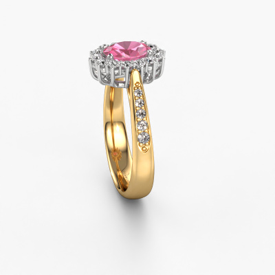 Der oben gezeigte Verlobungsring wird Margien 2 genannt. Wir nennen das einen Lady Diana Ring. Mit einem Lady Diana Verlobungsring ist der größere, zentrale Edelstein von kleineren Seitensteinen umgeben. Dieser Ring aus 14 Karat Gold ist besetzt mit einem 7x5 mm oval Pink Saphir, umgeben von kleineren Diamanten als Seitensteinen. Sie kennen wahrscheinlich diesen außergewöhnlichen, traditionell Gold Lady Diana Ring. Es ist der berühmteste Verlobungsring der Welt. Ausschließlich für die bemerkenswerteste Person in Ihrem Leben bestimmt! Ein wirklich atemberaubender Aspekt dieses speziellen Lady Diana Rings ist sein zentraler Pink Saphir. Die kleineren Seitensteine, die den Pink Saphir umfassen, betonen den Glanz des mittleren Edelsteins. Dadurch sieht es so aus, als ob sie zu einem großen Edelstein verschmelzen. Aufgrund seines Designs ist das bei Lady Di Ring noch deutlicher. Unsere erfahrenen Goldschmiede möchten einen einzigartigen Ring für Sie kreieren. Wir entwerfen unseren Ring in unserem eigenen Studio. Das macht es Ihnen leicht, den Ring nach Ihren Wünschen zu gestalten. Jedes Schmuckstück ist um Ihrem Finger Glanz zu verleihen. Jeder Ring wird von unseren Goldschmieden liebevoll von Hand gefertigt.Haben Sie ein bestimmtes Budget? Sie können uns gerne kontaktieren, damit wir Ihre Optionen besprechen können. Wir bieten unsere Verlobungsringe zum garantiert besten Preis, denn wir fertigen sie auf Bestellung. Solche Preise finden Sie nirgendwo anders!Unser Team fügt unserer Online-Kollektion täglich neue Designs hinzu. Unsere Designer und Goldschmiede arbeiten zusammen, um das beste Design zu kreieren. Wir bemühen uns, eine vielfältige Kollektion von Schmuckstücken anzubieten. Vielleicht haben Sie ein bestimmtes Design im Sinn. Eines, dass Sie irgendwo gesehen haben. Gerne geben wir Ihnen eine kostenlose Beratung. Wir machen Ihnen ein Angebot, basierend auf einem fairen Preis/Leistungsverhältnis, das Sie verblüffen wird.Um es einfacher zu machen, bieten wir eine kostenlose 30-tägige Rücksendung.