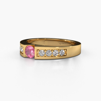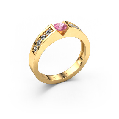 Der oben gezeigte Ring wird Lizzy 2 genannt. Es ist ein Pavé Solitär Ring, da er einen zentralen Edelstein und ein Band mit Pavé-Fassung hat. Dieser 14 Karat Gold ring ist mit einem 4.2 mm rund Pink Saphir-Mittelstein besetzt und das Band hat eine Pavé-Fassung mit Diamanten. Jedes Schmuckstück lässt Ihren Finger erstrahlen. Ihr Ring ist mit Liebe von unseren Goldschmieden handgefertigt.Dieser moderne Gold Pavé Solitär Verlobungsring mit Pavé-Fassung hat einen exquisiten, rund Pink Saphir als Mittelstein. Um den zentralen Stein noch mehr zu betonen, hat das Band eine Pavé-Fassung mit weiteren Diamanten. Durch die offenen Krappen kann das Licht aus mehreren Winkeln auf den Pink Saphir treffen und der Pink Saphir-Ring funkelt noch mehr. Das obere Foto zeigt die leidenschaftlich handgefertigten Details des Rings. Die hohe Positionierung der Mittelstein ist ein echter Blickfang. Der perfekte Verlobungsring für das Kronjuwel Ihres Lebens!Durch die Kombination modernster Technik mit uralter Handwerkskunst können wir alle Verlobungsringe in unserem eigenen Studio anfertigen. Jedes Schmuckstück wird auf Anfrage gefertigt. Das ist vorteilhaft, weil wir Ihnen dadurch einen Preis anbieten können, den Sie nirgendwo anders finden.Unser Team fügt unserer Online-Kollektion täglich neue Designs hinzu. Unsere Designer und Goldschmiede arbeiten zusammen, um das beste Design zu kreieren. Wir bemühen uns, eine vielfältige Kollektion von Schmuckstücken anzubieten. Vielleicht haben Sie ein bestimmtes Design im Sinn. Eines, dass Sie irgendwo gesehen haben. Gerne geben wir Ihnen eine kostenlose Beratung. Wir machen Ihnen ein Angebot, basierend auf einem fairen Preis/Leistungsverhältnis, das Sie verblüffen wird.Um es einfacher zu machen, bieten wir eine kostenlose 30-tägige Rücksendung.
