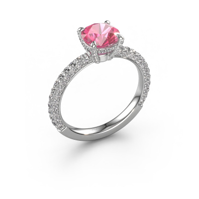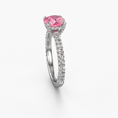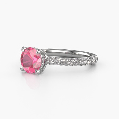 Der oben gezeigte Platin Verlobungsring wird Saskia rnd 2 genannt. Es ist ein Pavé Solitär Ring, da er einen zentralen Edelstein und ein Band mit Pavé-Fassung hat. Der exklusive Pavé Solitär Verlobungsring ist in der Kombination Platin mit Platin und ist mit einem rund 7 mm Pink Saphir-Mittelstein besetzt und das Band hat eine Pavé-Fassung mit Lab grown Diamant. Jedes Schmuckstück wird hergestellt von einem Team leidenschaftlicher Goldschmiede und Schmuckdesigner. Das wird Ihr Kronjuwel unbedingt zu einem Blickfang machen. Um den zentralen Stein noch mehr zu betonen, hat das Band eine Pavé-Fassung mit weiteren Pink Saphir. Durch die offenen Krappen kann das Licht aus mehreren Winkeln auf den Pink Saphir treffen und der Pink Saphir-Ring funkelt noch mehr. Das obere Foto zeigt die leidenschaftlich handgefertigten Details des Rings. Die hohe Positionierung der Mittelstein ist ein echter Blickfang. Der perfekte Verlobungsring für das Kronjuwel Ihres Lebens!Nach Erhalt Ihrer Bestellung beginnen unsere Goldschmiede mit Leidenschaft den kreativen Prozess und fertigen Ihren Verlobungsring in unserem eigenen Studio. Da wir keine großen Lager haben, werden diese Kosten nicht an Sie weitergegeben. Unsere Preisgestaltung ist der Beweis dafür! Wir bieten Schmuck zum niedrigsten Preis, garantiert.Unser Team fügt unserer Online-Kollektion täglich neue Designs hinzu. Unsere Designer und Goldschmiede arbeiten zusammen, um das beste Design zu kreieren. Wir bemühen uns, eine vielfältige Kollektion von Schmuckstücken anzubieten. Vielleicht haben Sie ein bestimmtes Design im Sinn. Eines, dass Sie irgendwo gesehen haben. Gerne geben wir Ihnen eine kostenlose Beratung. Wir machen Ihnen ein Angebot, basierend auf einem fairen Preis/Leistungsverhältnis, das Sie verblüffen wird.Um es einfacher zu machen, bieten wir eine kostenlose 30-tägige Rücksendung.