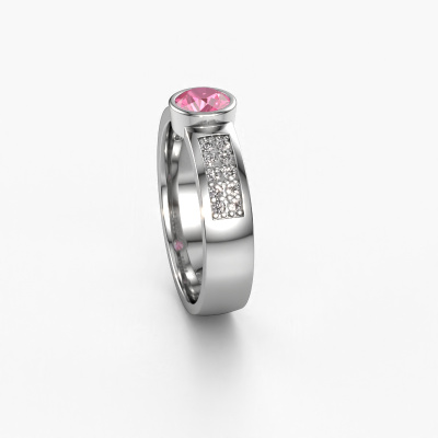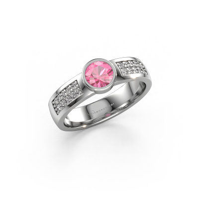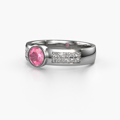 Der oben gezeigte Platin Verlobungsring wird Ise 3 genannt. Es ist ein Pavé Solitär Ring, da er einen zentralen Edelstein und ein Band mit Pavé-Fassung hat. Der moderne Pavé Solitär Verlobungsring ist in der Kombination Platin mit Platin und ist mit einem rund 4.7 mm Pink Saphir-Mittelstein besetzt und das Band hat eine Pavé-Fassung mit Diamanten. Jedes Schmuckstück wird von unseren Meister-Goldschmieden in unserem eigenen Studio für Sie gefertigt. Um den zentralen Stein noch mehr zu betonen, hat das Band eine Pavé-Fassung mit weiteren Pink Saphir. Durch die offenen Krappen kann das Licht aus mehreren Winkeln auf den Pink Saphir treffen und der Pink Saphir-Ring funkelt noch mehr. Das obere Foto zeigt die leidenschaftlich handgefertigten Details des Rings. Die hohe Positionierung der Mittelstein ist ein echter Blickfang. Der perfekte Verlobungsring für das Kronjuwel Ihres Lebens!Da wir unsere eigenen Ringe entwerfen und liefern, können wir Ihnen einen Verlobungsring zu einem Preis anbieten, den Sie nirgendwo anders finden. Ein Ring wird auf Bestellung angefertigt, wodurch kein überschüssiges Material anfällt. So können wir Ihnen ein gutes Angebot zum besten Preis machen. Wir verstehen, dass es sich riskant anfühlt, Ihren Verlobungsring online zu kaufen. Jedoch helfen wir Ihnen gerne beim Designprozess unter Berücksichtigung Ihres Budgets.Unser Team fügt unserer Online-Kollektion täglich neue Designs hinzu. Unsere Designer und Goldschmiede arbeiten zusammen, um das beste Design zu kreieren. Wir bemühen uns, eine vielfältige Kollektion von Schmuckstücken anzubieten. Vielleicht haben Sie ein bestimmtes Design im Sinn. Eines, dass Sie irgendwo gesehen haben. Gerne geben wir Ihnen eine kostenlose Beratung. Wir machen Ihnen ein Angebot, basierend auf einem fairen Preis/Leistungsverhältnis, das Sie verblüffen wird.Um es einfacher zu machen, bieten wir eine kostenlose 30-tägige Rücksendung.