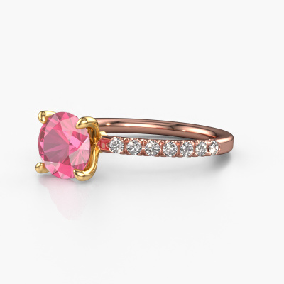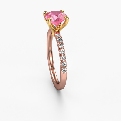 Der oben gezeigte Roségold Verlobungsring wird Crystal RND 2 genannt. Es ist ein Pavé Solitär Ring, da er einen zentralen Edelstein und ein Band mit Pavé-Fassung hat. Der klassische Pavé Solitär Verlobungsring ist in der Kombination 14 Karat Roségold mit Gold und ist mit einem rund 7.3 mm Pink Saphir-Mittelstein besetzt und das Band hat eine Pavé-Fassung mit Lab grown Diamant. Jedes Schmuckstück ist einzigartig in jeder Hinsicht! Einfach nach Ihren Wünschen anzupassen. Um den zentralen Stein noch mehr zu betonen, hat das Band eine Pavé-Fassung mit weiteren Pink Saphir. Durch die offenen Krappen kann das Licht aus mehreren Winkeln auf den Pink Saphir treffen und der Pink Saphir-Ring funkelt noch mehr. Das obere Foto zeigt die leidenschaftlich handgefertigten Details des Rings. Die hohe Positionierung der Mittelstein ist ein echter Blickfang. Der perfekte Verlobungsring für das Kronjuwel Ihres Lebens!Nachdem Sie Ihre Bestellung aufgegeben haben, beginnen unsere Goldschmiede mit dem kreativen Prozess der Herstellung Ihres Crystal RND 2 Verlobungsring. Wir haben keine Lager. Das ist vorteilhaft, da diese Kosten nicht an Sie weitergegeben werden. Daher sind wir in der Lage, Schmuck zu außergewöhnlich niedrigen Preisen anzubieten.Verschiedene Arten von neuen Ringen werden täglich von unserem Team angefertigt. Vielleicht haben Sie irgendwo einen Pavé Solitär Verlobungsring gefunden. Einen, den Sie Ihrem Liebsten schenken möchten. Bitte zögern Sie nicht, unseren Schmuckdesignern Ihre Gedanken und Ihr Design zu zeigen. Wir würden gerne Ihr Design in einen klassische Verlobungsring verwandeln. Sie können die Entwicklungen Ihres Ringdesigns verfolgen, da wir sehr detaillierte 3D-Zeichnungen verwenden. Darüber hinaus können Sie einen Dummy des Designs bestellen. Ein Dummy ist ein Kunststoffring, der nach Ihrem Ringdesign gestaltet werden kann. Sie können ihn anprobieren und prüfen, ob der Verlobungsring Ihren Vorstellungen entspricht. Wir senden Ihnen gerne ein unverbindliches Angebot zu einem fairen Preis/Leistungsverhältnis. Das Angebot wird Sie angesichts der Qualität des Rings und der Edelsteine verblüffen.Um es einfacher zu machen, bieten wir eine kostenlose 30-tägige Rücksendung.