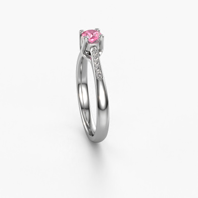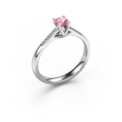 Der oben gezeigte Ring wird Janna 2 genannt. Es ist ein Pavé Solitär Ring, da er einen zentralen Edelstein und ein Band mit Pavé-Fassung hat. Dieser 14 Karat Weißgold ring ist mit einem 4 mm rund Pink Saphir-Mittelstein besetzt und das Band hat eine Pavé-Fassung mit Diamanten. Jedes Schmuckstück wird von unseren Meister-Goldschmieden in unserem eigenen Studio für Sie gefertigt.Dieser klassische Weißgold Pavé Solitär Verlobungsring mit Pavé-Fassung hat einen exquisiten, rund Pink Saphir als Mittelstein. Um den zentralen Stein noch mehr zu betonen, hat das Band eine Pavé-Fassung mit weiteren Diamanten. Durch die offenen Krappen kann das Licht aus mehreren Winkeln auf den Pink Saphir treffen und der Pink Saphir-Ring funkelt noch mehr. Das obere Foto zeigt die leidenschaftlich handgefertigten Details des Rings. Die hohe Positionierung der Mittelstein ist ein echter Blickfang. Der perfekte Verlobungsring für das Kronjuwel Ihres Lebens!Durch die Kombination modernster Technik mit uralter Handwerkskunst können wir alle Verlobungsringe in unserem eigenen Studio anfertigen. Jedes Schmuckstück wird auf Anfrage gefertigt. Das ist vorteilhaft, weil wir Ihnen dadurch einen Preis anbieten können, den Sie nirgendwo anders finden.Haben Sie einen bestimmten Ring im Sinn? Eines, dass Sie irgendwo gesehen haben. Bitte zögern Sie nicht, uns zu sagen, was Sie wollen und wir werden Ihr Design in einen Einzigartigen Verlobungsring verwandeln. Sie können die Entwicklungen Ihres Ringdesigns verfolgen, da wir 3D-Zeichnungen verwenden. Das gibt Ihnen eine realistische Vorschau Ihres Designs. Wir senden Ihnen gerne ein unverbindliches Angebot zu einem fairen Preis/Leistungsverhältnis. Es wird Sie erstaunen.Um es einfacher zu machen, bieten wir eine kostenlose 30-tägige Rücksendung.