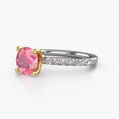 Der oben gezeigte Weißgold Verlobungsring wird Crystal RND 2 genannt. Es ist ein Pavé Solitär Ring, da er einen zentralen Edelstein und ein Band mit Pavé-Fassung hat. Der klassische Pavé Solitär Verlobungsring ist in der Kombination 14 Karat Weißgold mit Gold und ist mit einem rund 7.3 mm Pink Saphir-Mittelstein besetzt und das Band hat eine Pavé-Fassung mit Lab grown Diamant. Jedes Schmuckstück ist einzigartig in jeder Hinsicht! Einfach nach Ihren Wünschen anzupassen. Um den zentralen Stein noch mehr zu betonen, hat das Band eine Pavé-Fassung mit weiteren Pink Saphir. Durch die offenen Krappen kann das Licht aus mehreren Winkeln auf den Pink Saphir treffen und der Pink Saphir-Ring funkelt noch mehr. Das obere Foto zeigt die leidenschaftlich handgefertigten Details des Rings. Die hohe Positionierung der Mittelstein ist ein echter Blickfang. Der perfekte Verlobungsring für das Kronjuwel Ihres Lebens!Nachdem Sie Ihre Bestellung aufgegeben haben, beginnen unsere Goldschmiede mit dem kreativen Prozess der Herstellung Ihres Crystal RND 2 Verlobungsring. Wir haben keine Lager. Das ist vorteilhaft, da diese Kosten nicht an Sie weitergegeben werden. Daher sind wir in der Lage, Schmuck zu außergewöhnlich niedrigen Preisen anzubieten.Verschiedene Arten von neuen Ringen werden täglich von unserem Team angefertigt. Vielleicht haben Sie irgendwo einen Pavé Solitär Verlobungsring gefunden. Einen, den Sie Ihrem Liebsten schenken möchten. Bitte zögern Sie nicht, unseren Schmuckdesignern Ihre Gedanken und Ihr Design zu zeigen. Wir würden gerne Ihr Design in einen klassische Verlobungsring verwandeln. Sie können die Entwicklungen Ihres Ringdesigns verfolgen, da wir sehr detaillierte 3D-Zeichnungen verwenden. Darüber hinaus können Sie einen Dummy des Designs bestellen. Ein Dummy ist ein Kunststoffring, der nach Ihrem Ringdesign gestaltet werden kann. Sie können ihn anprobieren und prüfen, ob der Verlobungsring Ihren Vorstellungen entspricht. Wir senden Ihnen gerne ein unverbindliches Angebot zu einem fairen Preis/Leistungsverhältnis. Das Angebot wird Sie angesichts der Qualität des Rings und der Edelsteine verblüffen.Um es einfacher zu machen, bieten wir eine kostenlose 30-tägige Rücksendung.